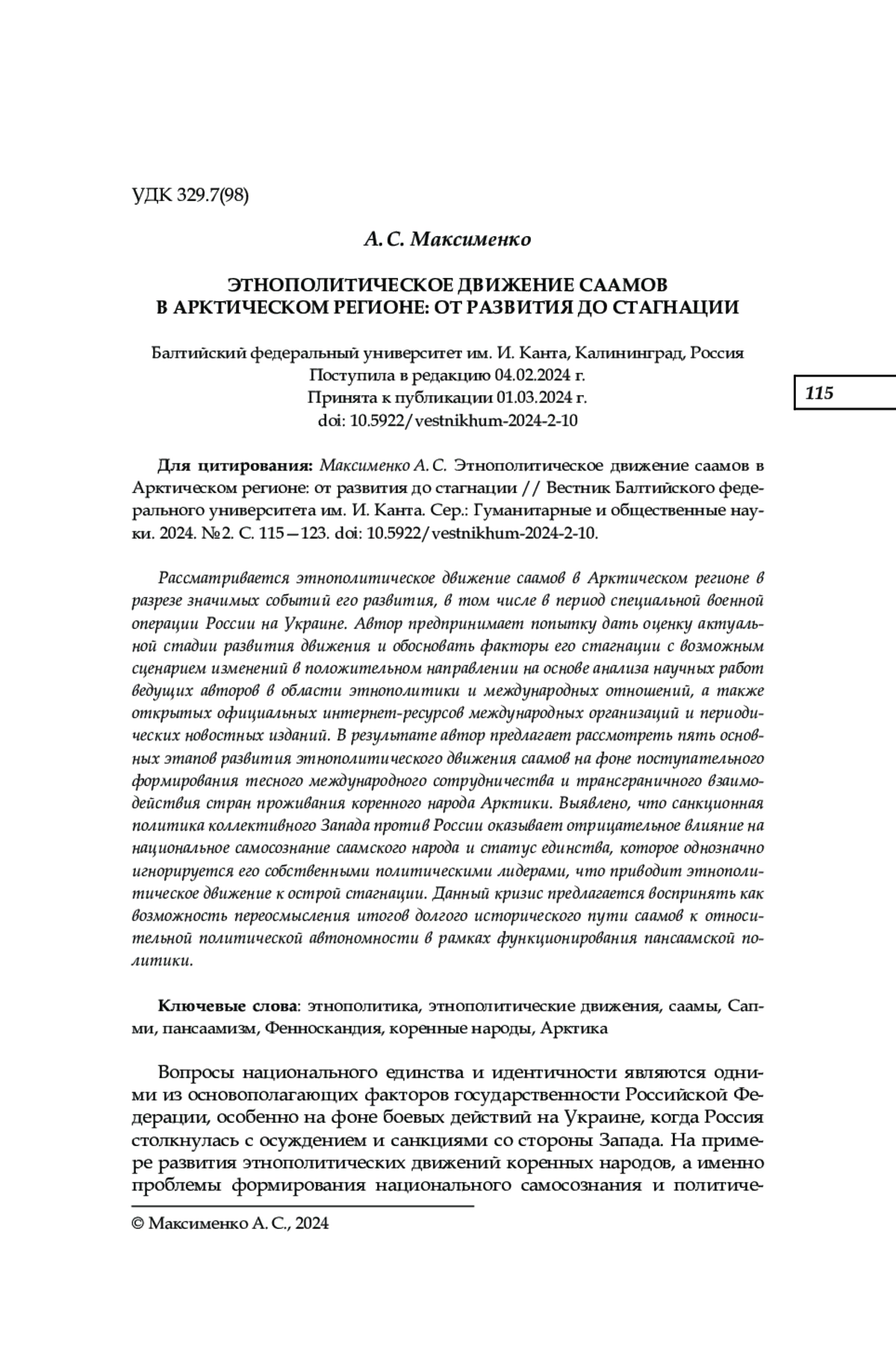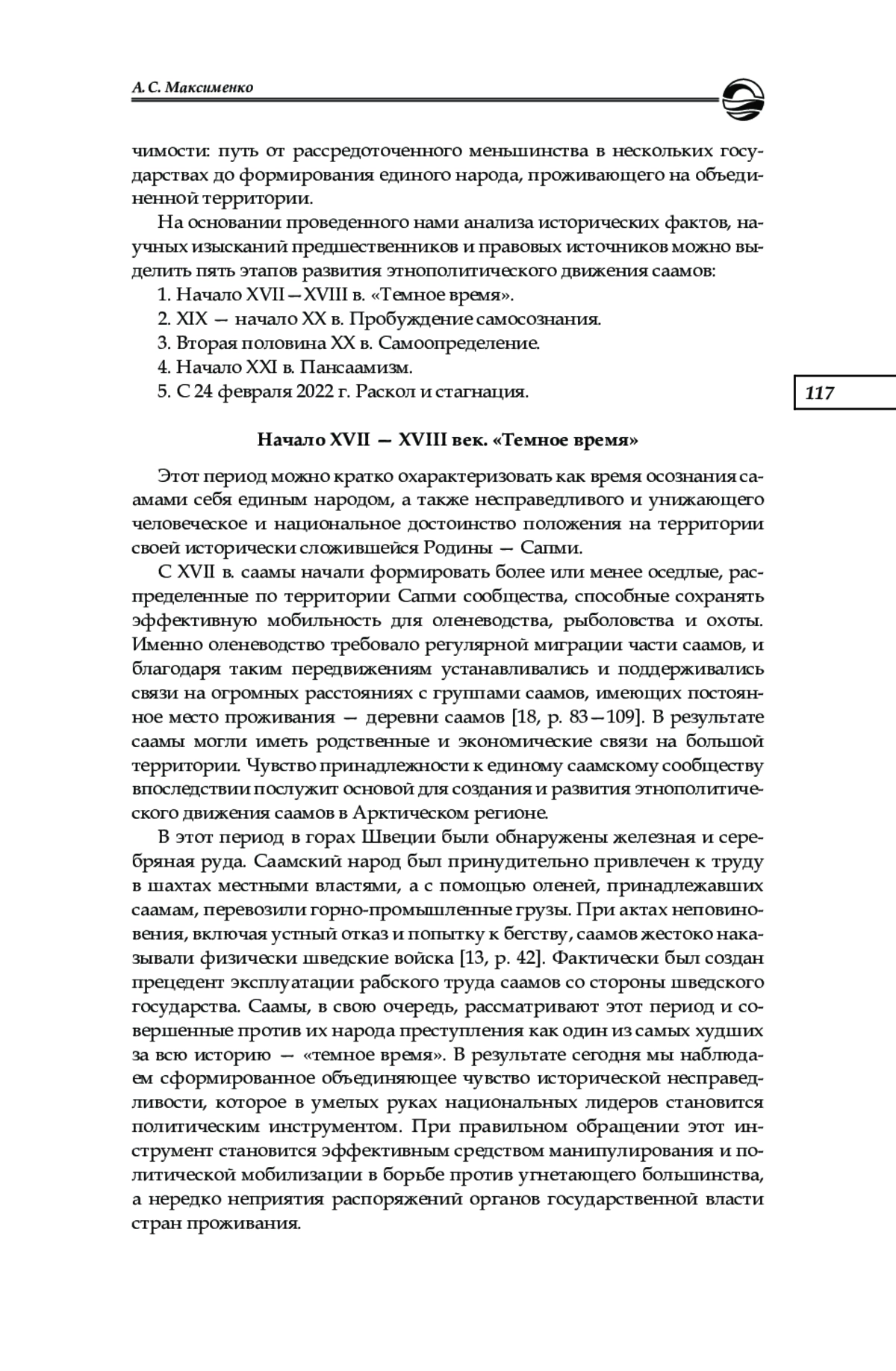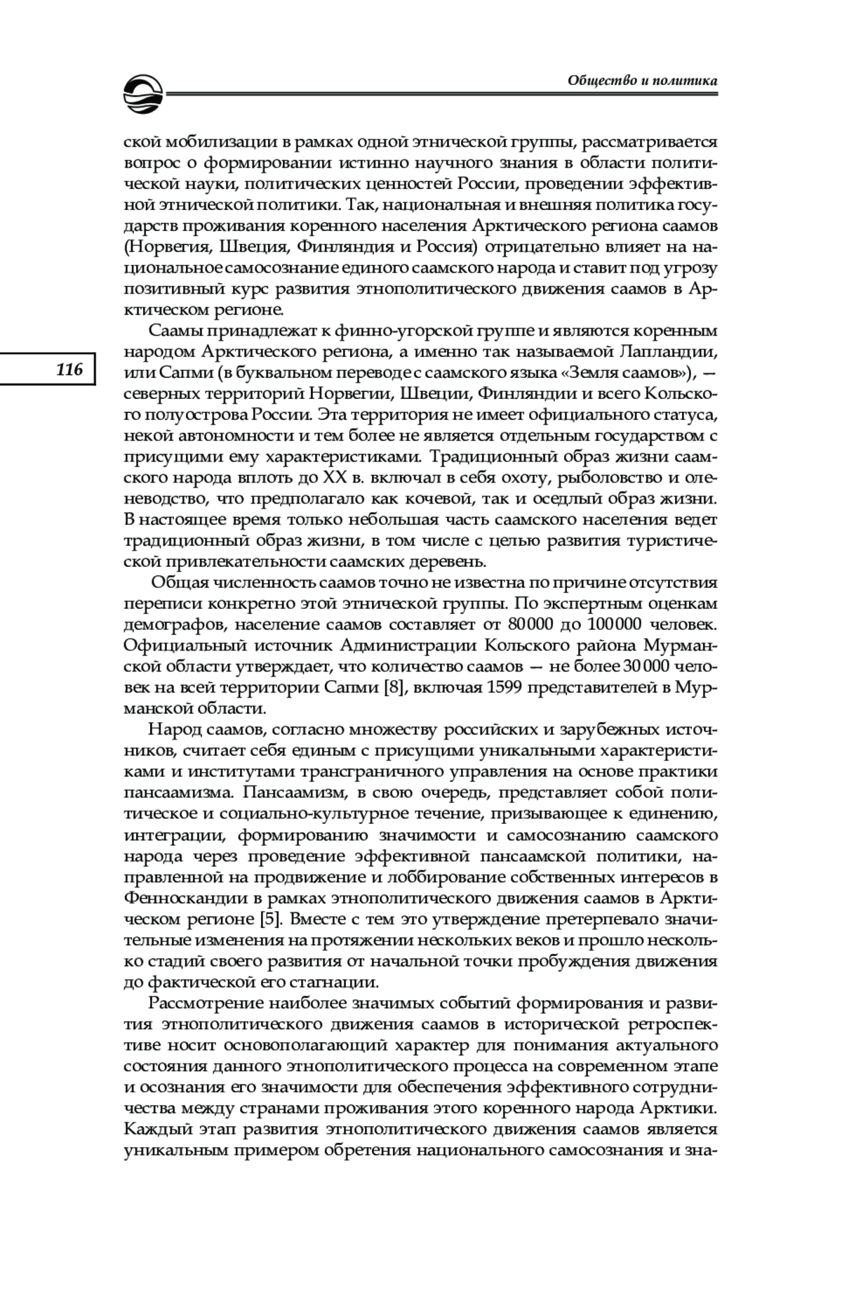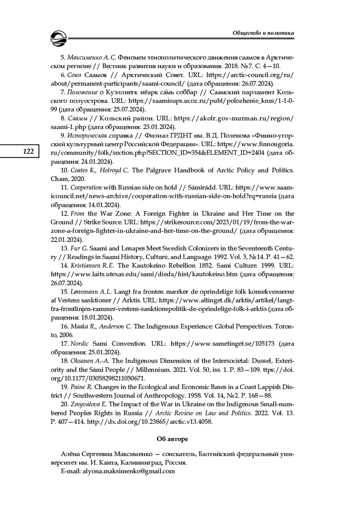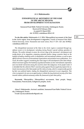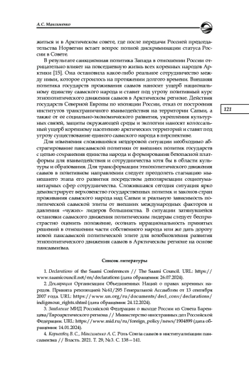 5. Максименко А. С. Феномен этнополитического движения саамов в Арктическом регионе // Вестник развития науки и образования. 2018. № 7. С. 4-10. EDN: UTKUVU
