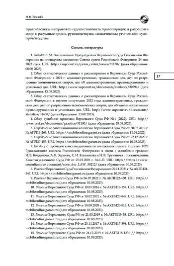1. Лебедев В. М. Выступление Председателя Верховного Суда Российской Федерации на пленарном заседании Совета судей Российской Федерации 24 мая 2022 года. URL: http://supcourt.ru/press_center/news/31150/ (дата обращения: 08.08.2023).