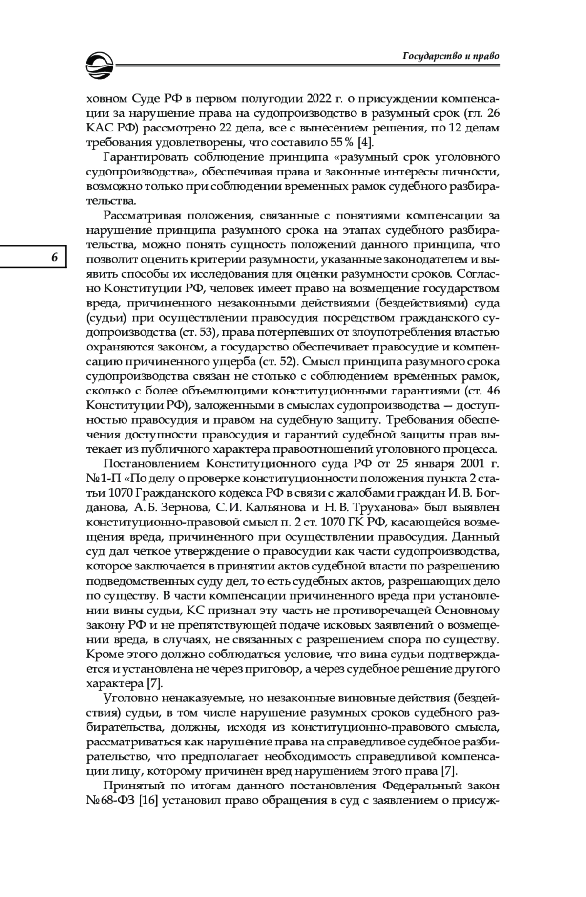 7. По делу о проверке конституционности положения пункта 2 статьи 1070 Гражданского кодекса Российской Федерации в связи с жалобами граждан И. В. Богданова, А. Б. Зернова, С. И. Кальянова и Н. В. Труханова: постановление Конституционного Суда РФ от 25.01.2001 г. № 1-П. URL: https://https://www.consultant.ru/document/cons_doc_LAW_30212/(дата обращения: 10.08.2023).
