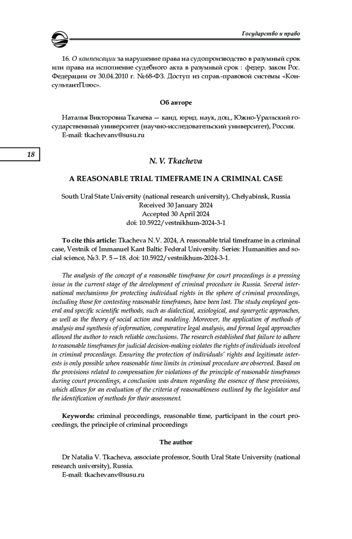 16. О компенсации за нарушение права на судопроизводство в разумный срок или права на исполнение судебного акта в разумный срок: федер. закон Рос. Федерации от 30.04.2010 г. № 68-ФЗ. Доступ из справ.-правовой системы “КонсультантПлюс”.