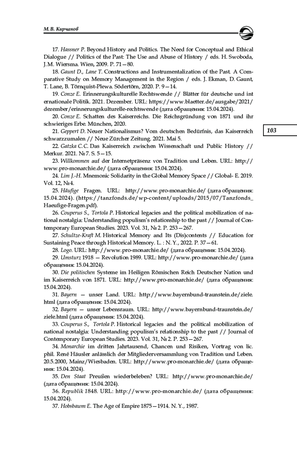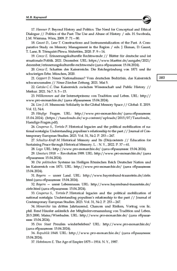 22. Gatzka C. C. Das Kaiserreich zwischen Wissenschaft und Public History // Merkur. 2021. № 7. S. 5-15.