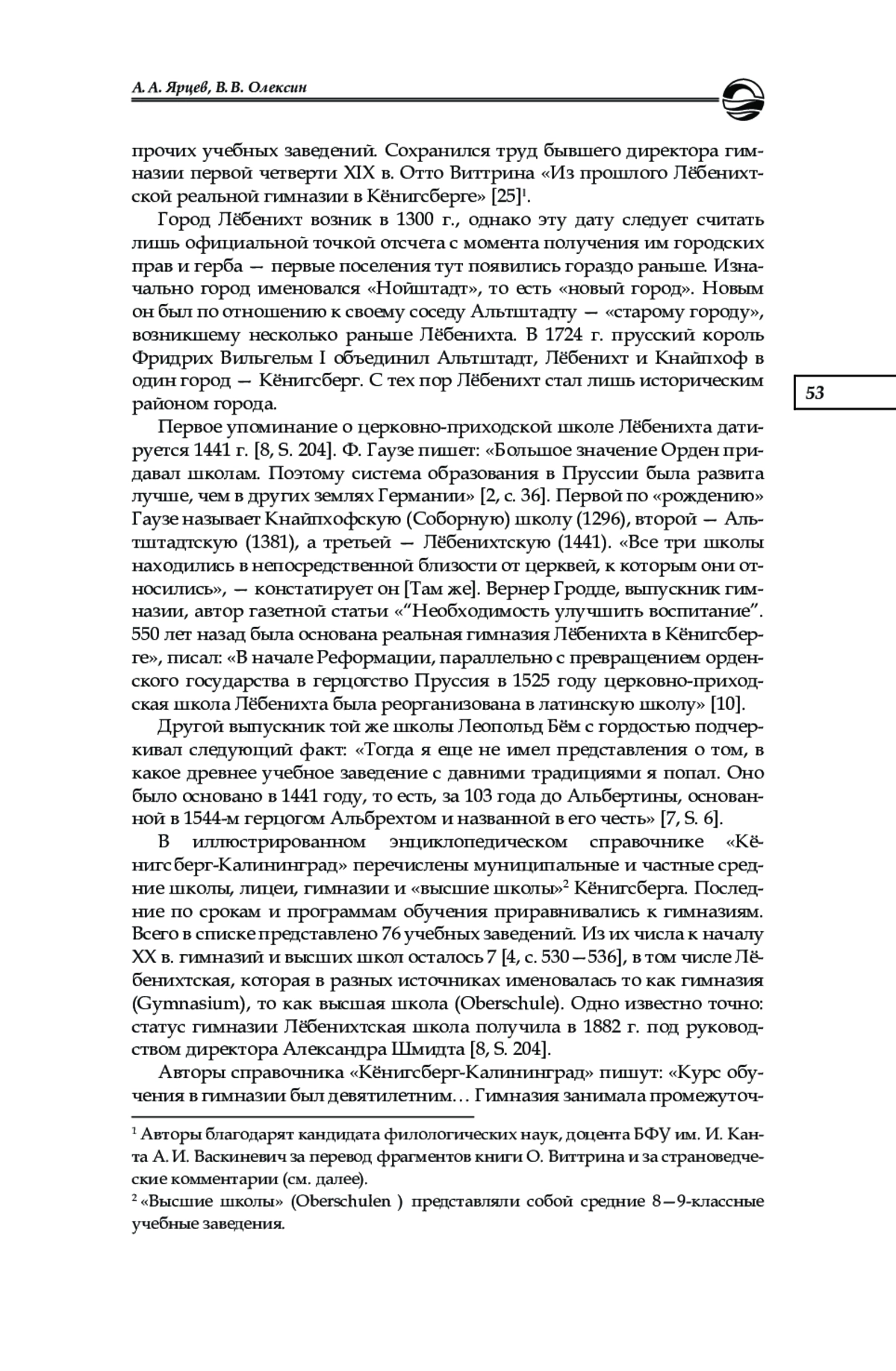 7. Jahre Schule in Löbenicht // Königsberger Bürgerbrief. 1991. № 37. S. 6-8.