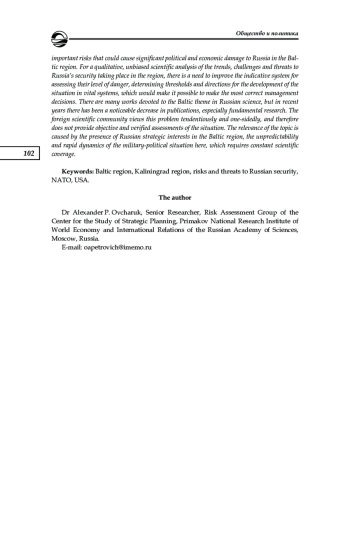 6. Зверев Ю., Межевич Н. Вызовы региональной безопасности: балтийский вектор // Международная жизнь. 2021. № 1. С. 28-43. EDN: KMUQMX
