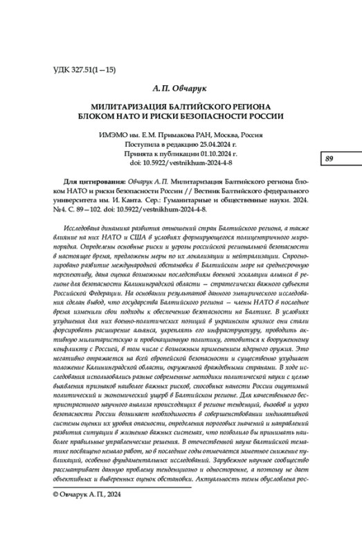 15. Овчарук А. П. НАТО превращает Балтийское море в регион нестабильности. 2022. URL: https://www.imemo.ru/news/events/text/nato-turns-the-baltic-sea-into-a-region-of-instability (дата обращения: 28.03.2024).