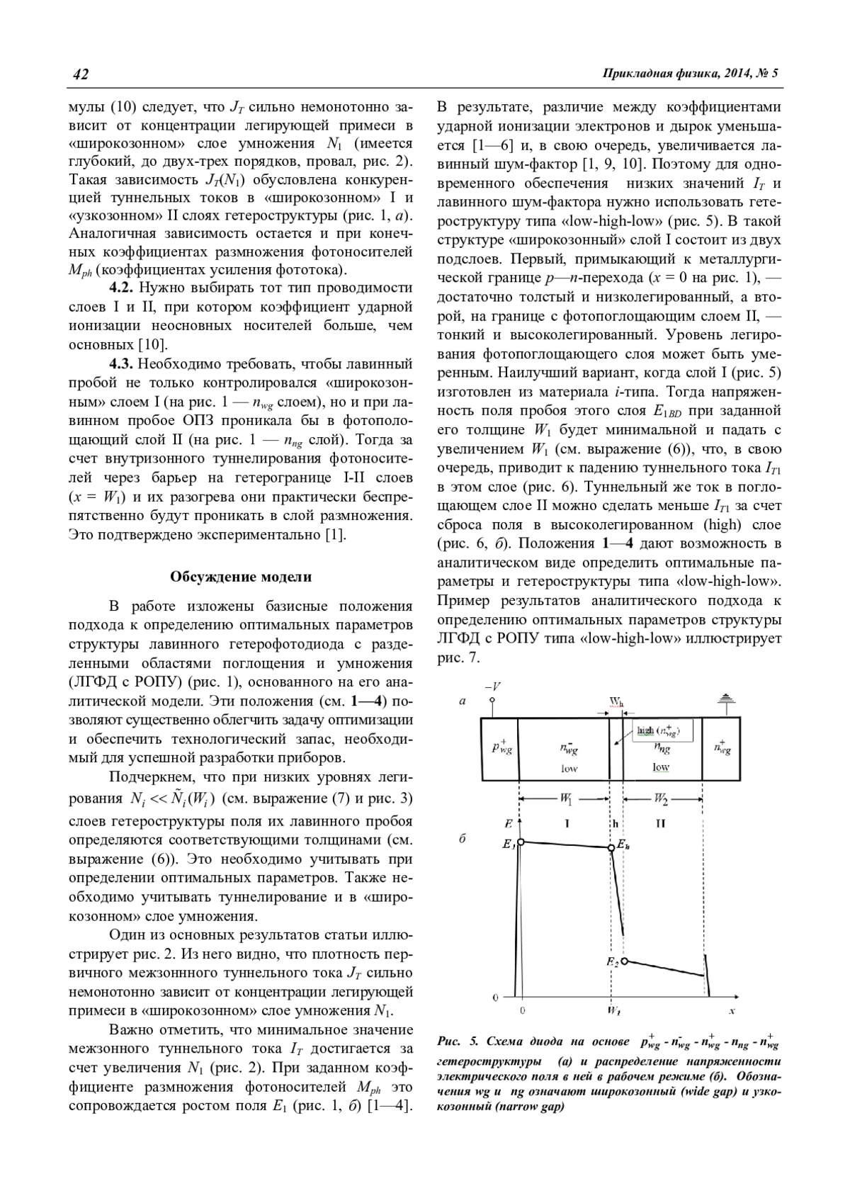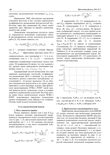 В заключение следует отметить, что в сочетании с работами [12, 13] данная статья и работы [9, 10] открывают возможность вывести аналитические зависимости Mph, IT и лавинного шумфактора ЛГФД с РОПУ от напряжения V, в том числе и при наличии переходного варизонного слоя.