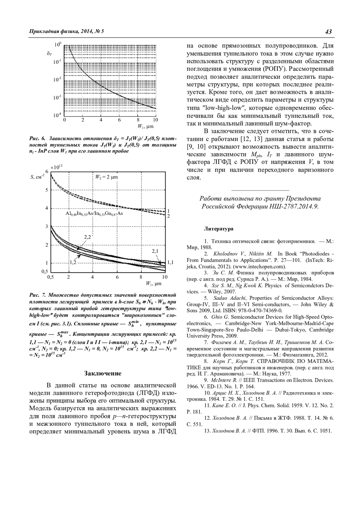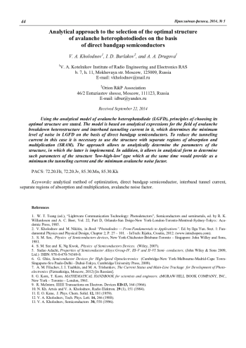 Холоднов В. А., Бурлаков И. Д., Другова А. А. Аналитический подход к выбору оптимальной структуры лавинных гетеро-фотодиодов на основе прямозонных полупроводников 38