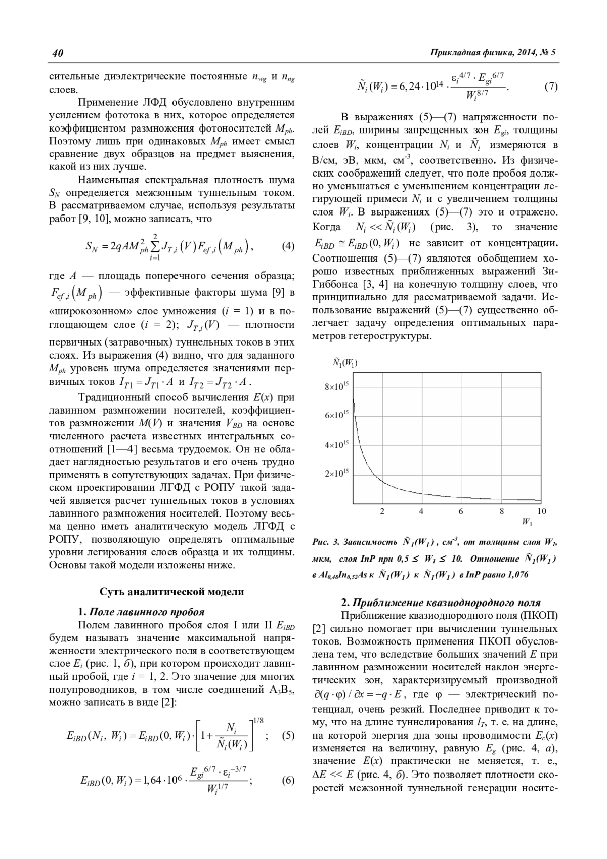 V. A. Kholodnov, I. D. Burlakov, and A. A. Drugova Analytical approach to the selection of the optimal structure of avalanche heterophotodiodes on the basis of direct bandgap semiconductors 38
