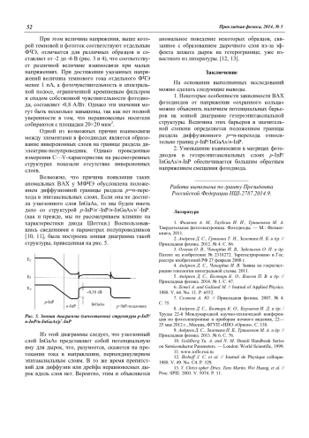 1. Некоторые особенности зависимости ВАХ фотодиодов от напряжения «охранного кольца» можно объяснить наличием потенциальных барьеров на зонной диаграмме гетероэпитаксиальной структуры. Величина этих барьеров в значительной степени определяется положением границы раздела диффузионного p─n-перехода относительно границ p-InP/InGaAs/n-InP.