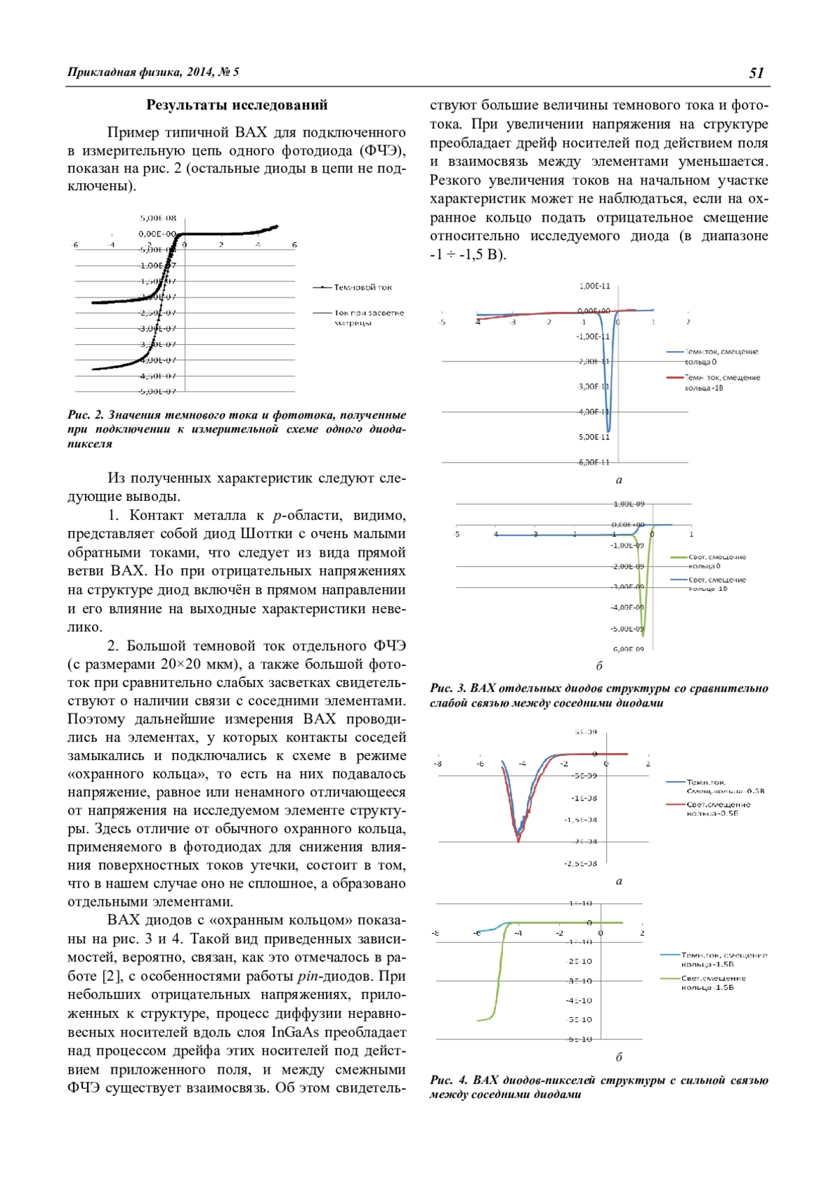 Акимов В. М., Андреев Д. С., Демидов С. С., Иродов Н. А., Климанов Е. А. Вольтамперные характеристики фотодиодов матрицы фоточувствительных элементов планарного типа на основе структуры p-InP/InGaAs/n-InP 50