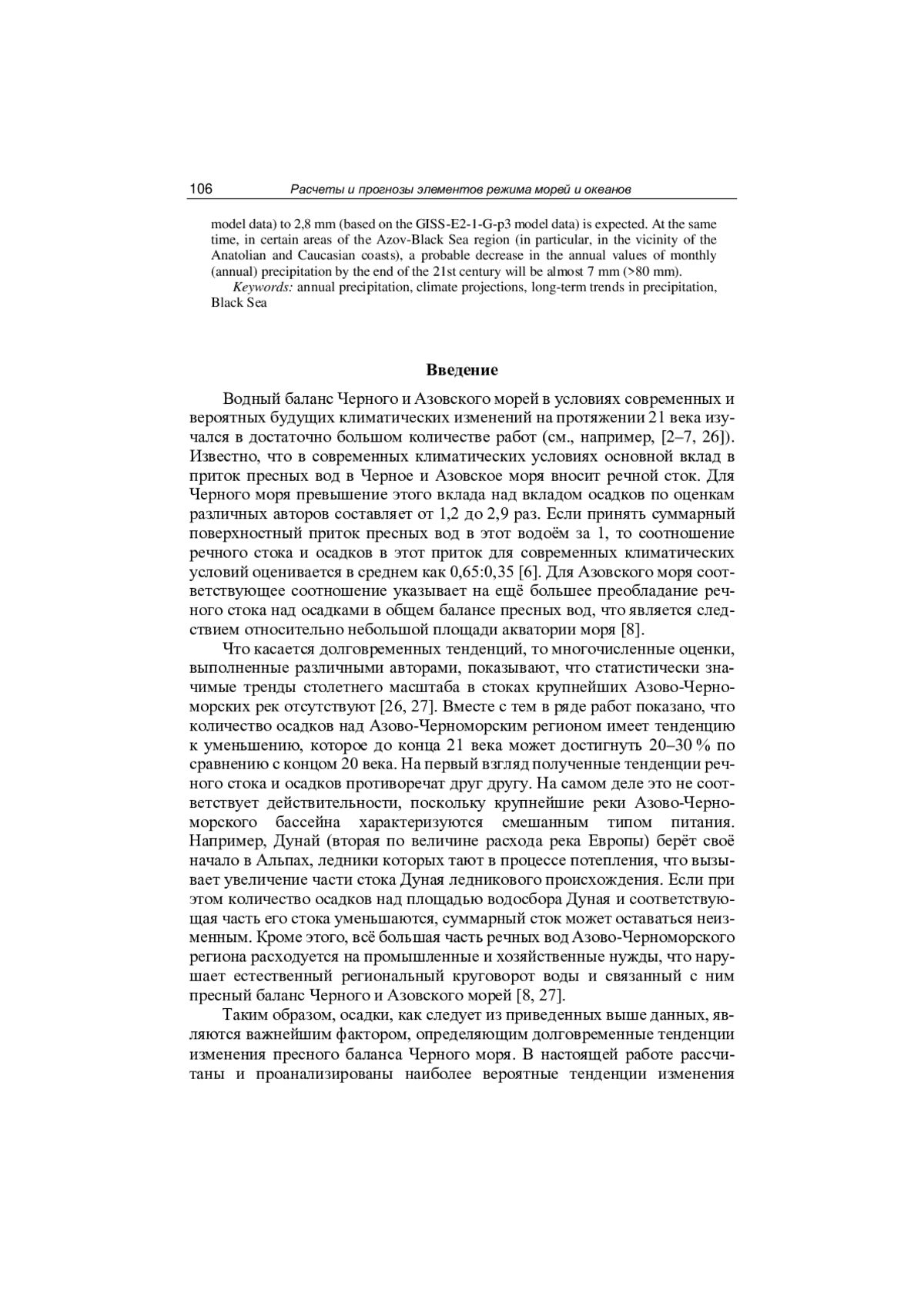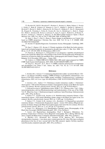 2. Анисимов А.Е., Ефимов В.В. Численные оценки изменения осадков в Черноморском регионе в XXI столетии // Морской гидрофизический журнал. 2012. № 6. С. 45-58. EDN: TTHGWV