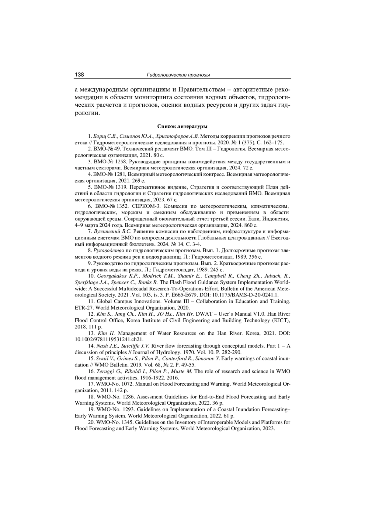 2. ВМО-№ 49. Технический регламент ВМО. Том III - Гидрология. Всемирная метеорологическая организация, 2021. 80 с.