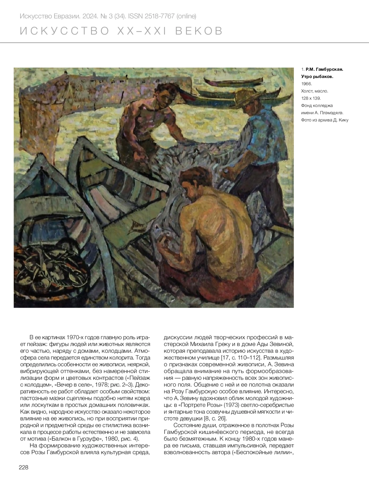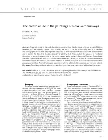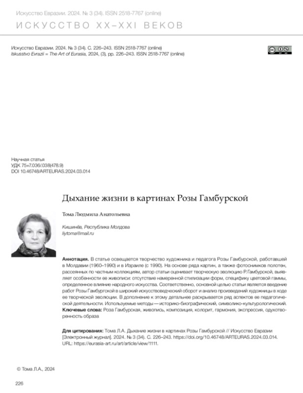 Тома Л.А. Дыхание жизни в картинах Розы Гамбурской // Искусство Евразии [Электронный журнал]. 2024. No 3 (34). С. 226–243. https://doi.org/10.46748/ARTEURAS.2024.03.014.