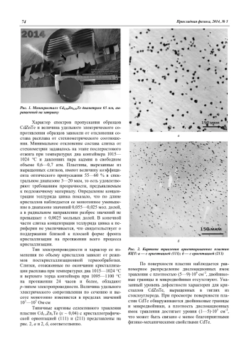Гришечкин М. Б., Денисов И. А., Силина А. А., Смирнова Н. А., Шматов Н. И. Исследование условий выращивания монокристаллов Cd1-xZnxTe (х ≤ 0,04) методом вертикальной направленной кристаллизации по Бриджмену 72