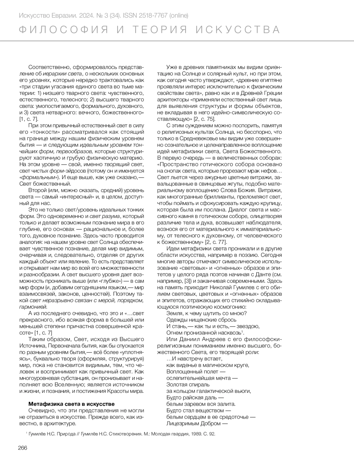 2. Shestakov, A. A., and Nasybullina, R. A. ‘Metaphysics of Light and Its Reception in Architecture’. *Vestnik Tverskogo gosudarstvennogo universiteta. Seriya “Filosofiya” = Herald of Tver State University. Series: Philosophy*, (2), 2015, pp. 73–84. (In Russ.)