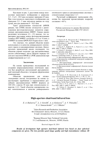 E. A. Bedareva, L. I. Gorelik, A. A. Kolesova, A. V. Polesskiy, N. A. Semenchenko, A. I. Shketov High-aperture dual-band infrared lens 80