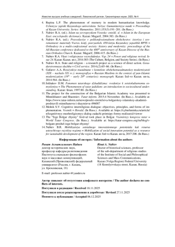 6. Православие в поликонфессиональном обществе: история и современность: материалы Всерос. конф., посвящ. 450-летию Казанской епархии РПЦ / под ред. Р. А. Набиева. Казань: Магариф, 2006. 415 с.