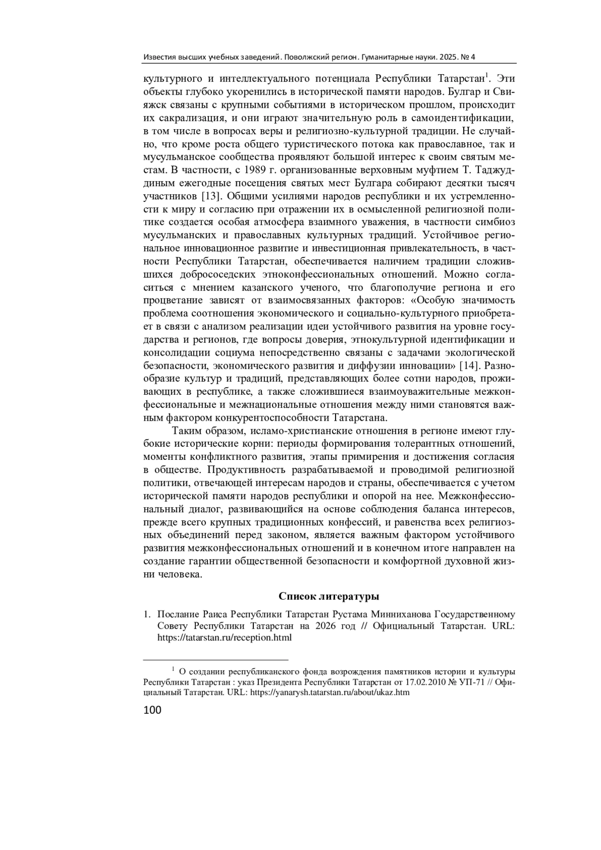 1. Послание Раиса Республики Татарстан Рустама Минниханова Государственному Совету Республики Татарстан на 2026 год // Официальный Татарстан. URL: https://tatarstan.ru/reception.html.