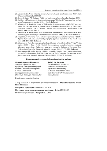 11. Бушуев А. С. Не дошедшие до Победы - Боевые потери РККА при освобождении Польши в 1944-1945 гг.: просопографичесий анализ // Военно-исторический журнал. 2024. № 9. С. 36-43. EDN: FNAEEC