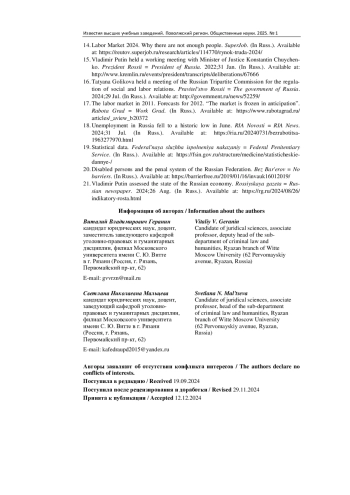 Материалы и методы. Использовались научные труды по исследуемым вопросам, материалы судебной практики и данные официальной статистики. Методологической основой послужил всеобщий диалектический метод познания. Кроме того, были реализованы системно-структурный метод, методы анализа и синтеза, дедукции и индукции, статистического анализа, обобщения судебной практики и экспертных оценок.