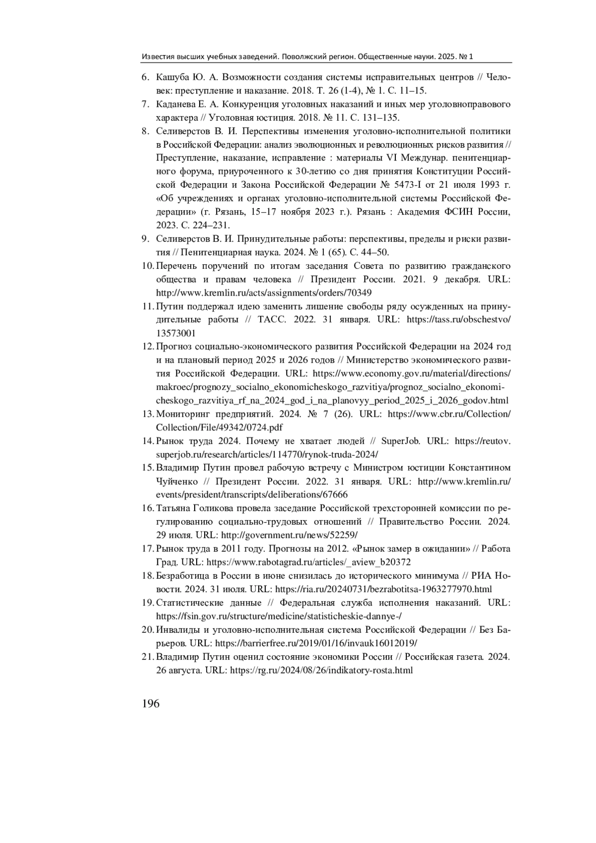 9. Селиверстов В. И. Принудительные работы: перспективы, пределы и риски развития // Пенитенциарная наука. 2024. № 1 (65). С. 44-50. EDN: PWYXZQ