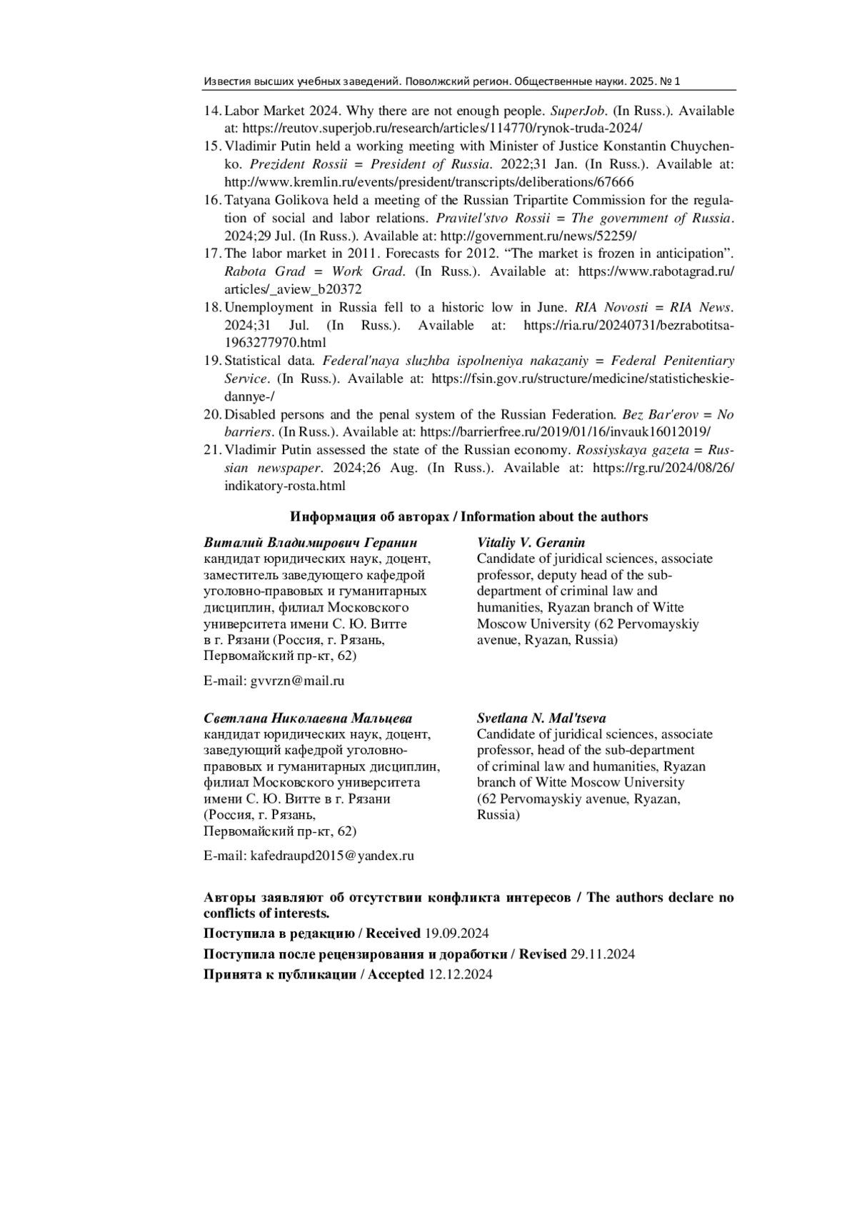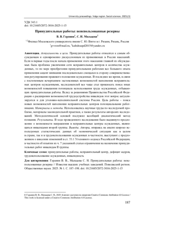 2. Геранин В. В. Проблемы применения наказания в виде принудительных работ // Научные труды Московского университета имени С. Ю. Витте: сб. науч. ст. / под ред. Н. Г. Малышева, А. В. Семенова. М.: Московский университет имени С. Ю. Витте, 2018. С. 55-65. EDN: CSFLLV