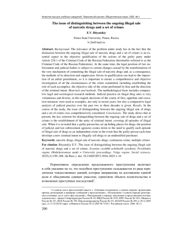 Результаты. В ходе проведенного исследования была комплексно рассмотрена проблема разграничения продолжаемого незаконного сбыта наркотических средств и совокупности преступлений.