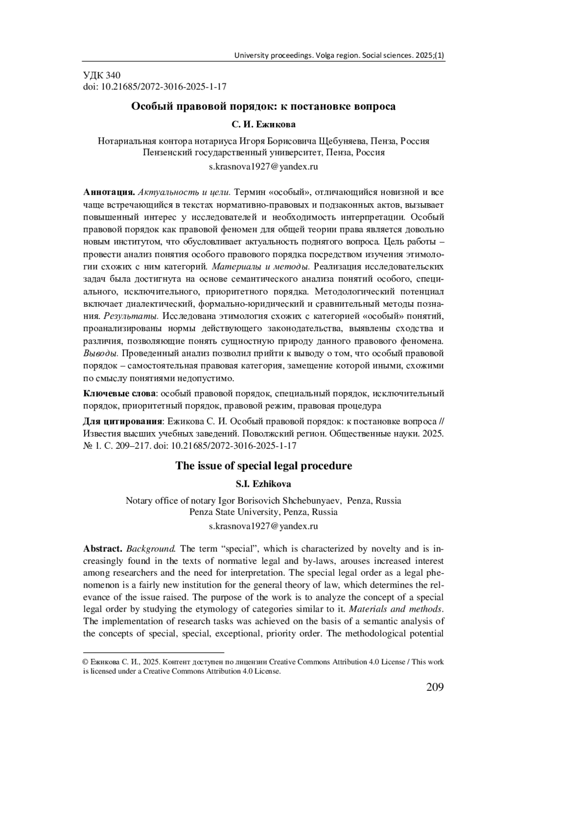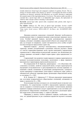 Материалы и методы. Реализация исследовательских задач была достигнута на основе семантического анализа понятий особого, специального, исключительного, приоритетного порядка. Методологический потенциал включает диалектический, формально-юридический и сравнительный методы познания.