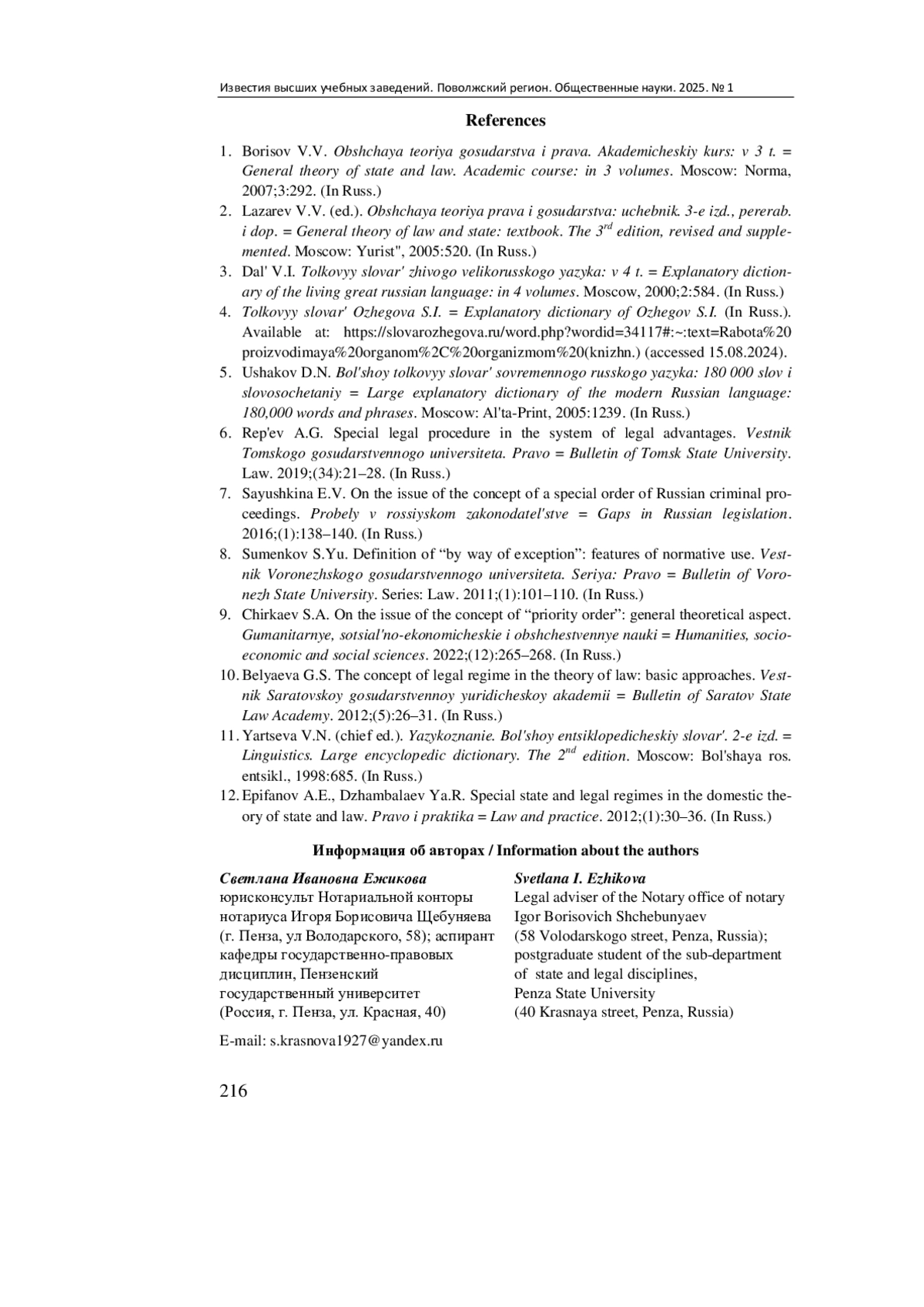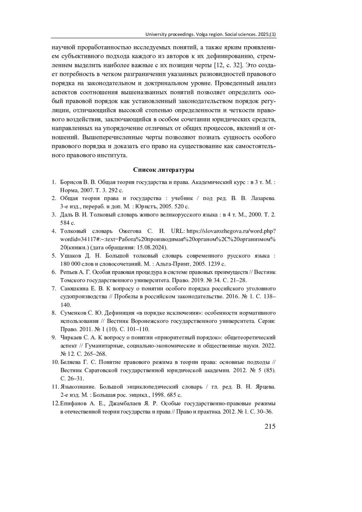 9. Чиркаев С. А. К вопросу о понятии “приоритетный порядок”: общетеоретический аспект // Гуманитарные, социально-экономические и общественные науки. 2022. № 12. С. 265-268. EDN: MVIJCD
