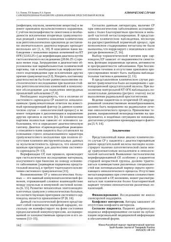 5. Зайцев А.А., Филон Е.А., Лиходий В.И., Кулагина И.Ц., Терновская Н.А. Саркоидоз легких и внутригрудных лимфатических узлов или саркоидная реакция? Туберкулез и болезни легких. 2023;6(101):96 -101. DOI: 10.58838/2075-1230-2023-101-6-96-101