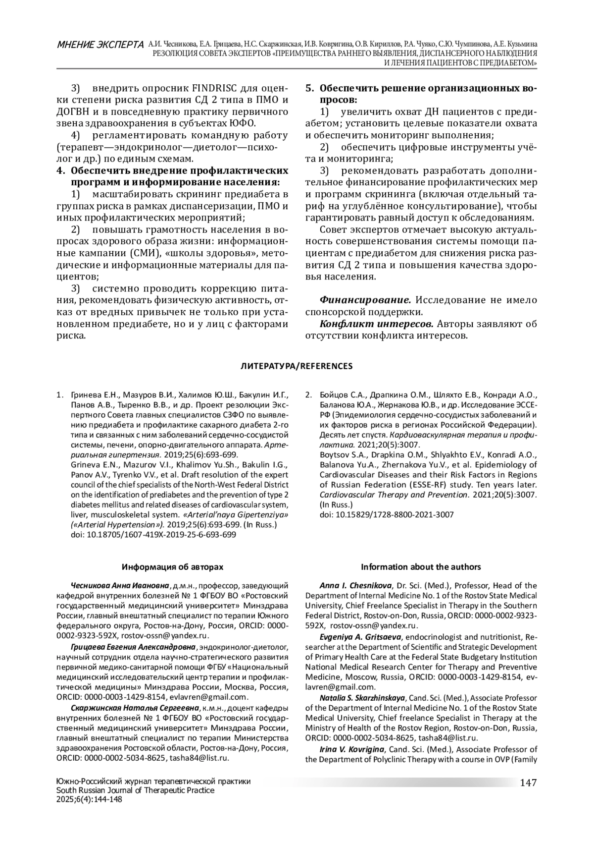 1. Гринева Е.Н., Мазуров В.И., Халимов Ю.Ш., Бакулин И.Г., Панов А.В., Тыренко В.В., и др. Проект резолюции Экспертного Совета главных специалистов СЗФО по выявлению предиабета и профилактике сахарного диабета 2-го типа и связанных с ним заболеваний сердечно-сосудистой системы, печени, опорно-двигательного аппарата. Артериальная гипертензия. 2019;25(6):693-699. DOI: 10.18705/1607-419X-2019-25-6-693-699