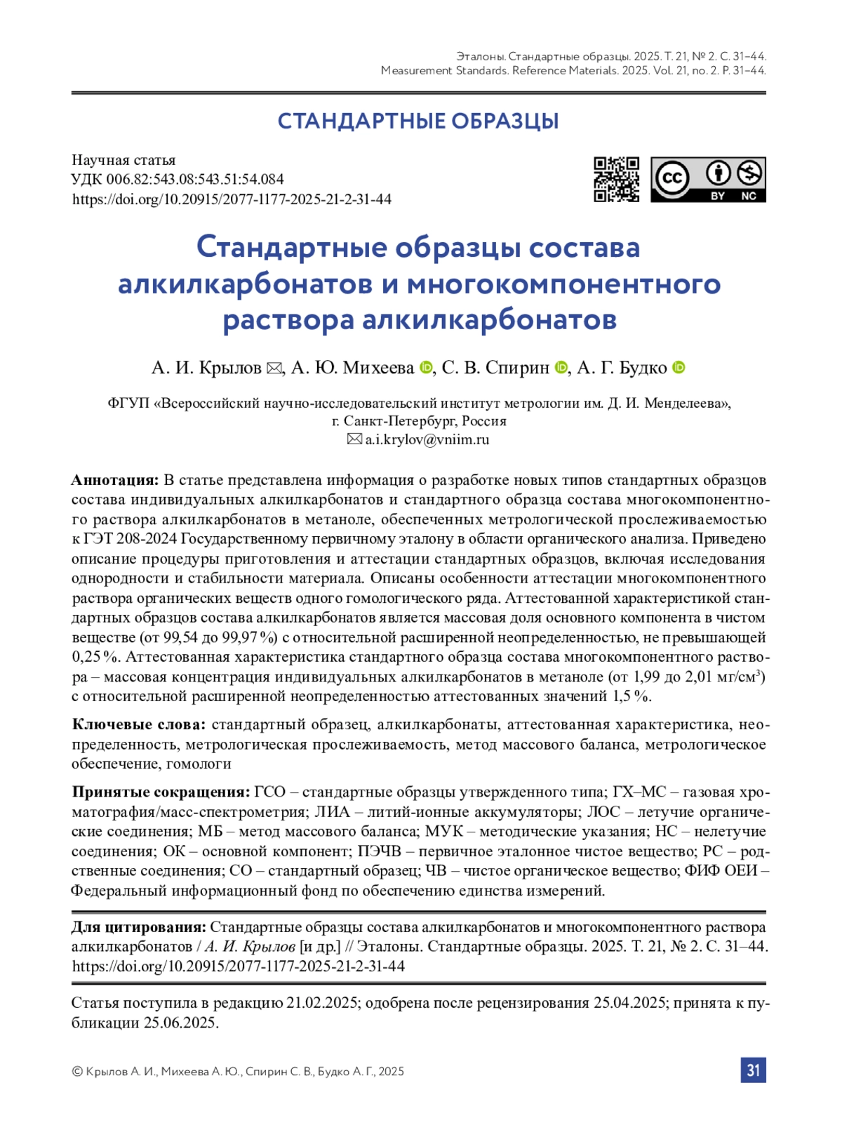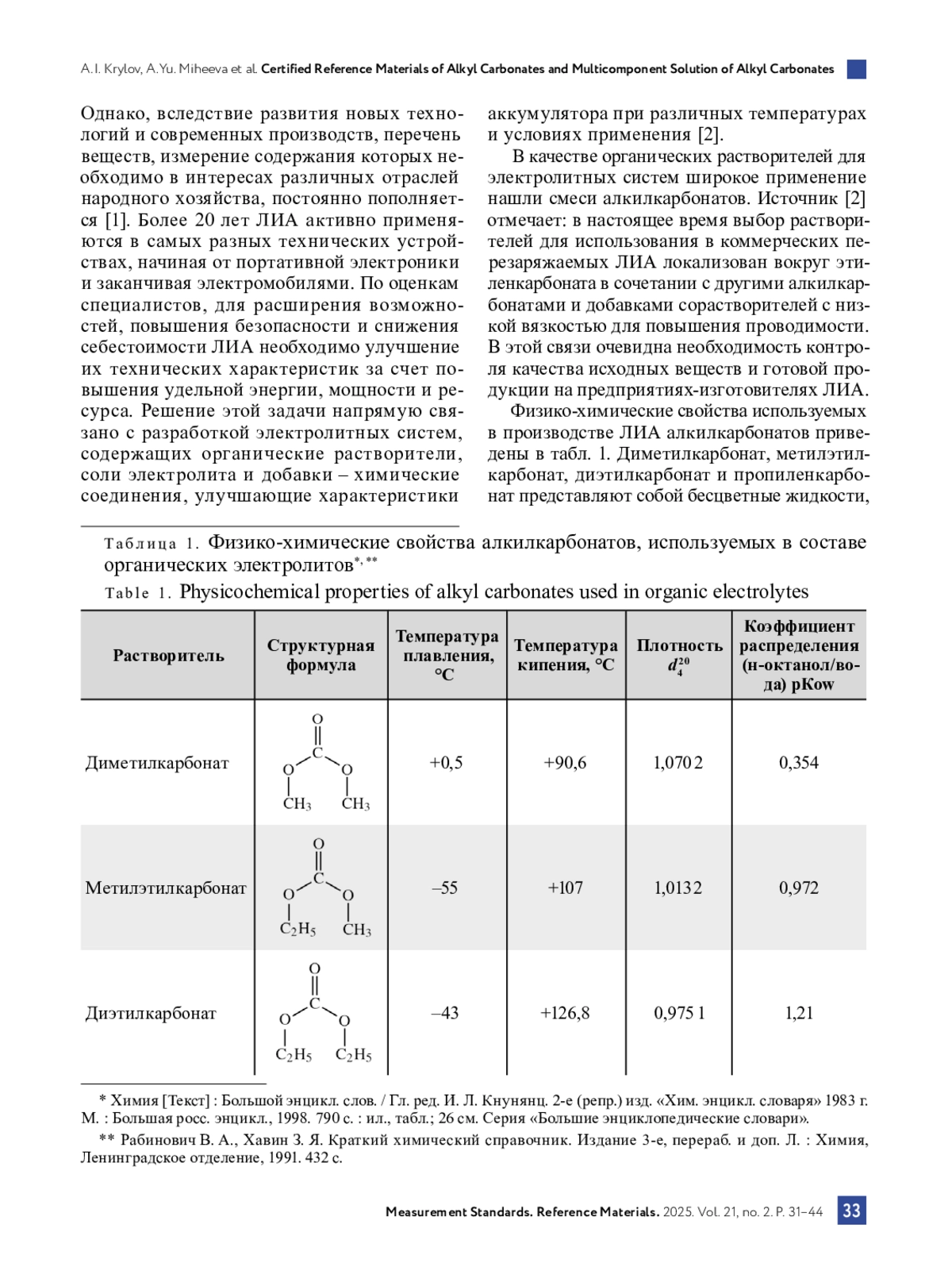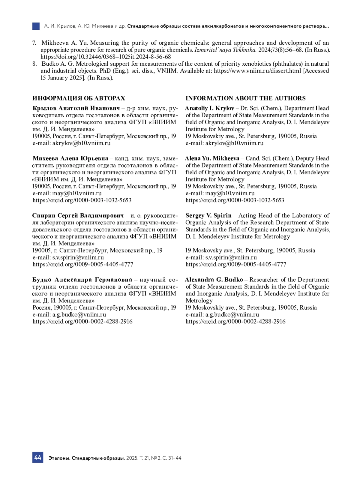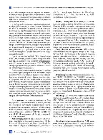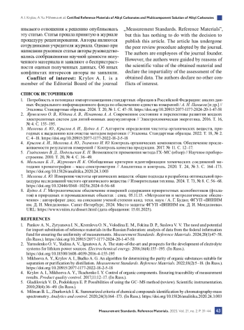 3. Михеева А. Ю., Крылов А. И., Будко А. Г. Алгоритм определения чистоты органических веществ, пригодных к выделению или очистке методом перегонки // Эталоны. Стандартные образцы. 2022. Т. 18, № 2. С. 4-18. DOI: 10.20915/2077-1177-2022-18-2-5-18