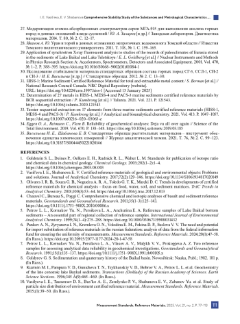2. Васильева И.Е., Шабанова Е.В. Стандартные образцы геологических материалов и объектов окружающей среды: проблемы и решения // Журнал аналитической химии. 2017. Т. 72, № 2. С. 99-118. DOI: 10.7868/S0044450217020141