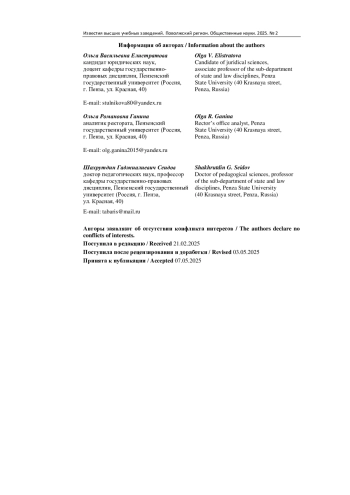 Актуальность и цели. В последние годы в связи со значительным ростом неопределенности и нестабильности в международных отношениях государствам становится сложнее отстаивать свои базовые национальные интересы; все чаще в заявлениях руководителей стран стало появляться понятие «красные линии», представляющее собой некий предел терпения, который нельзя пересекать, нарушение которых может привести к ряду ответных действий. Цель работы - исследование теоретических и практических оснований «красных линий» во внешней политике и социологический анализ их понимания и отношения к ним со стороны студенческой молодежи. Материалы и методы. Изучение представлений молодежи о «красных линиях» во внешней политике основано на материалах авторских качественных и количественных исследований, проведенных в 2025 г. среди студенческой молодежи г. Пензы, а также анализе теоретических, правовых источников по рассматриваемой тематике. Результаты. На основе комплексного анализа концепции «красных линий» во внешней политике представлено их теоретическое осмысление, исследованы представления студенческой молодежи об их сущности, условиях выдвижения и применения во внешнеполитической сфере. Выводы. «Красные линии» во внешней политике России наиболее ярко стали выдвигаться после 2022 г., начала специальной военной операции. В среде студенческой молодежи присутствует толкование «красных линий», соответствующее их общепринятому содержанию. Молодые люди выделяют наиболее яркие «красные линии» для России сегодня - это Украина и расширение НАТО. Присутствует поддержка со стороны молодежи решений руководства страны об ответных мерах при нарушении российских «красных линий»: большая часть считают используемые меры адекватными.