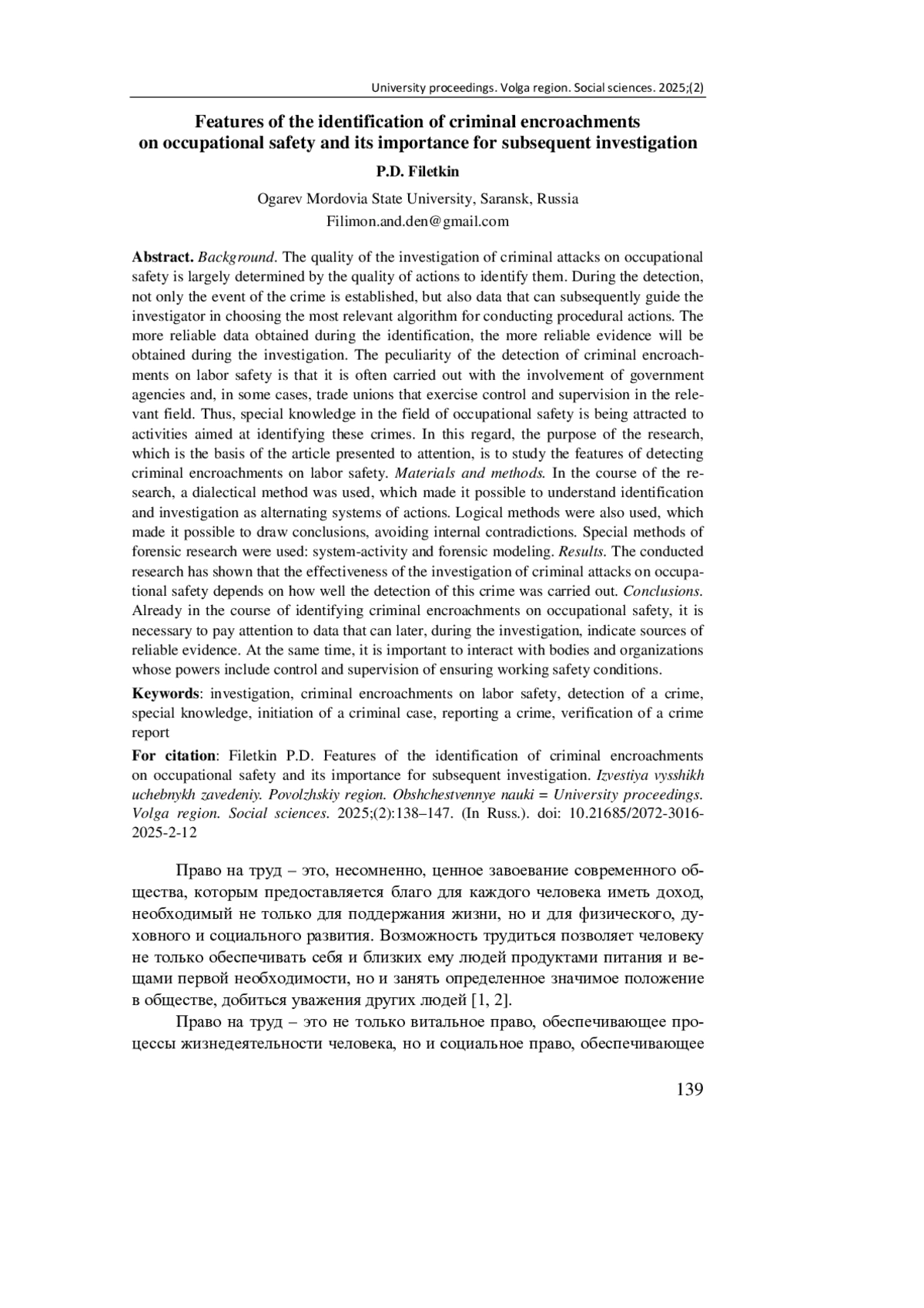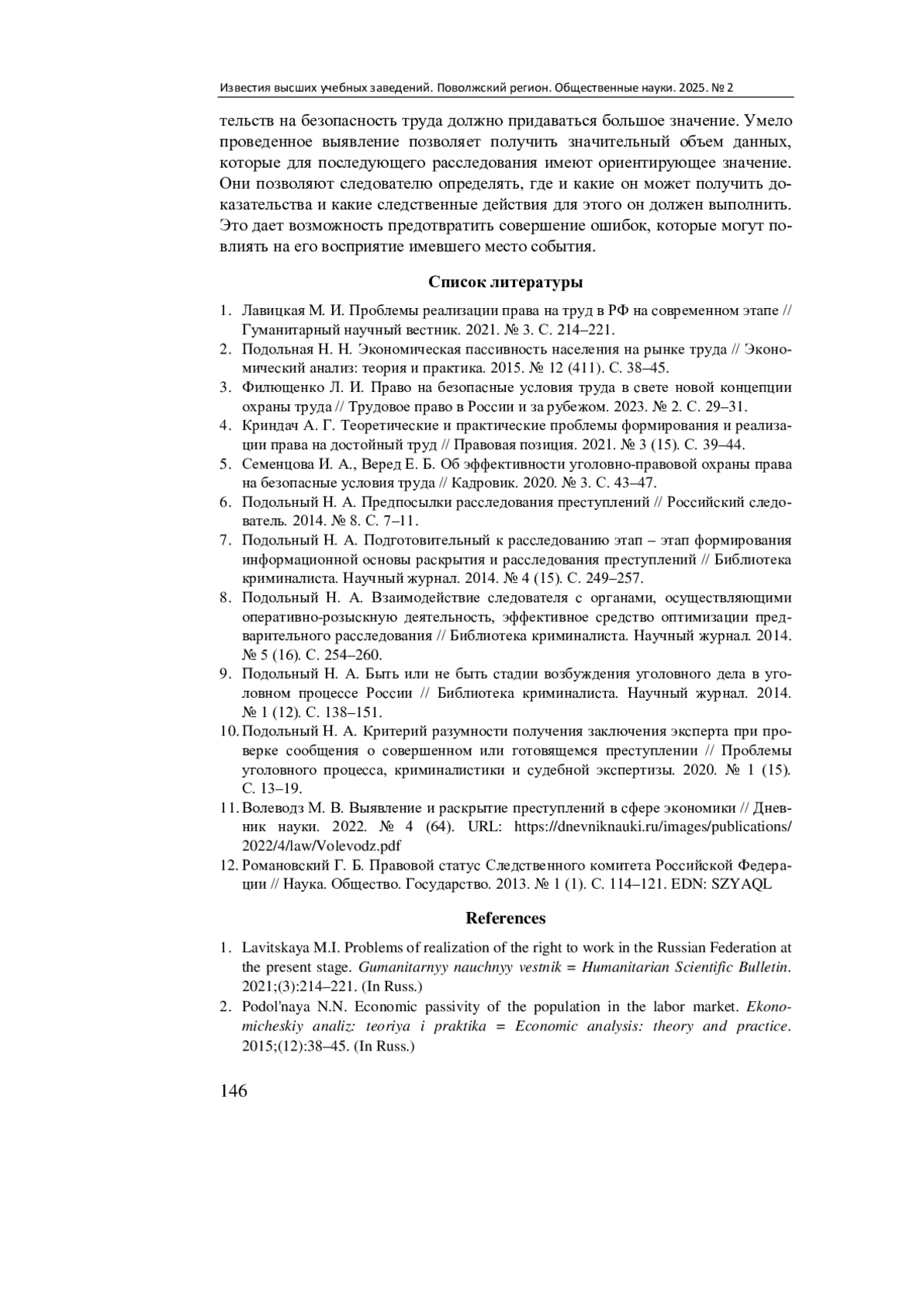 1. Лавицкая М. И. Проблемы реализации права на труд в РФ на современном этапе // Гуманитарный научный вестник. 2021. № 3. С. 214-221. EDN: EUAULU