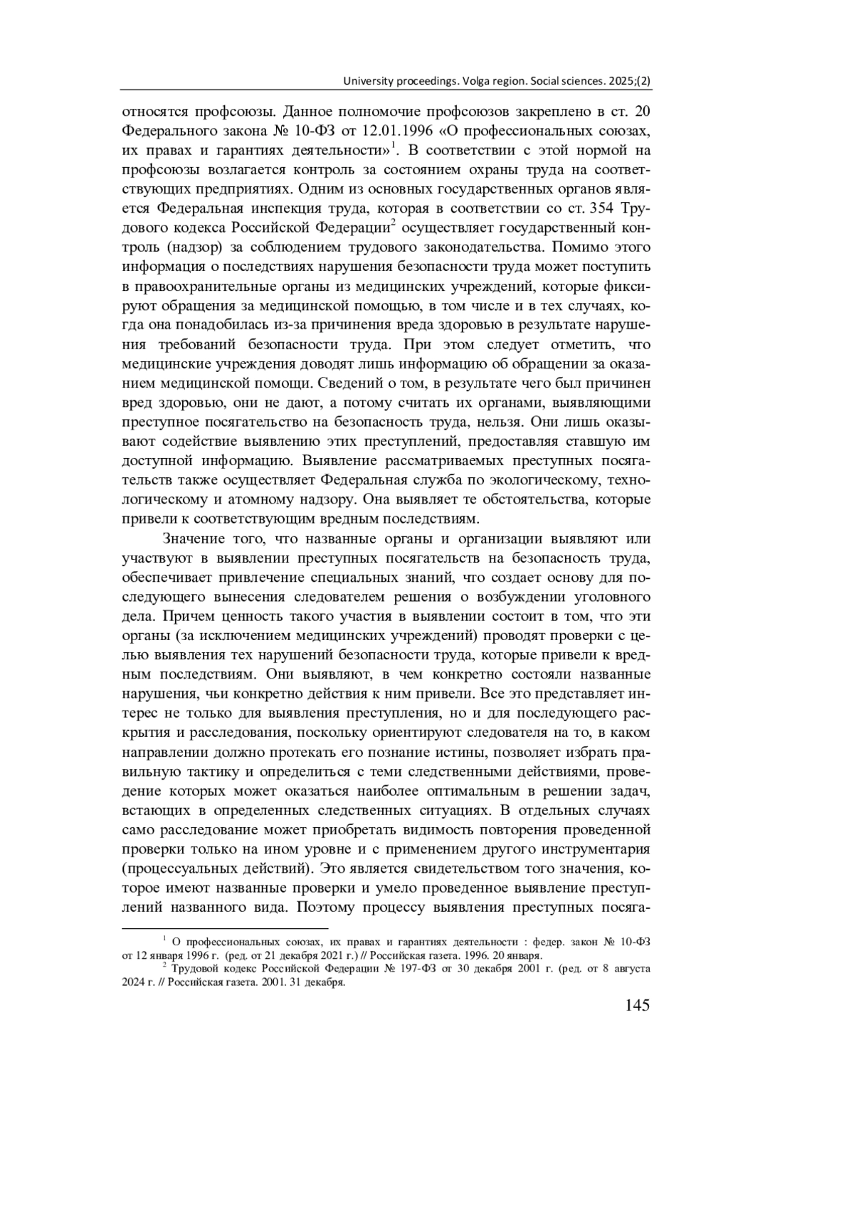 3. Филющенко Л. И. Право на безопасные условия труда в свете новой концепции охраны труда // Трудовое право в России и за рубежом. 2023. № 2. С. 29-31. EDN: BORXXT