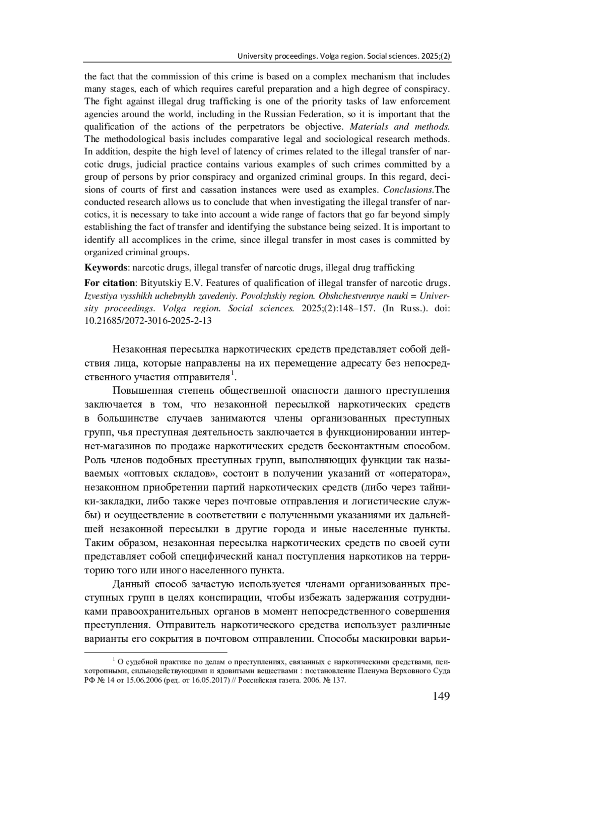 Актуальность и цели. Актуальность исследуемой проблемы заключается в том, что квалификация незаконной пересылки наркотических средств имеет ряд особенностей, связанных в первую очередь с тем, что в основе совершения данного преступления находится сложный механизм, включающий в себя множество этапов, каждый из которых требует тщательной подготовки и высокой степени конспирации. Борьба с незаконной пересылкой наркотиков является одной из приоритетных задач правоохранительных органов во всем мире, в том числе и в Российской Федерации, поэтому важно, чтобы квалификация действий виновных лиц была объективной.