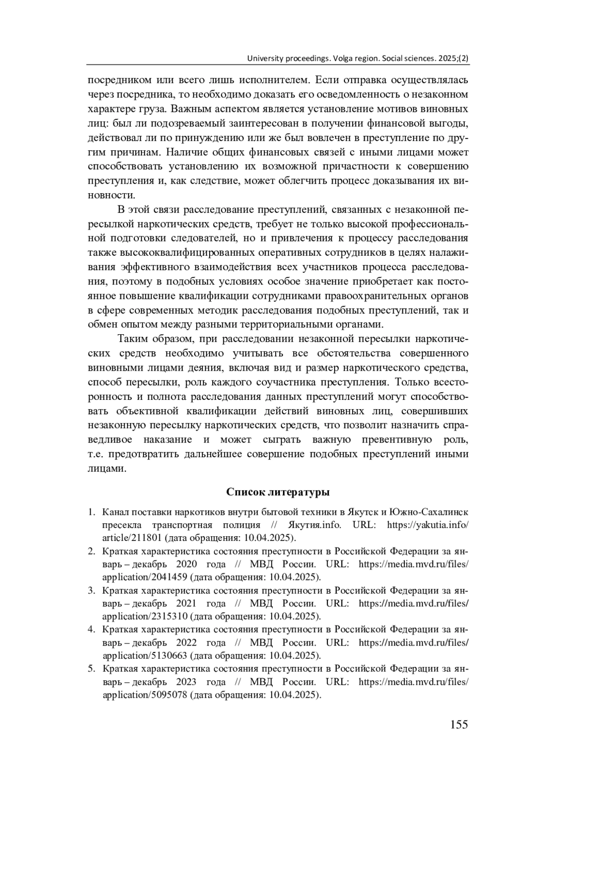 7. Краткая характеристика состояния преступности в Российской Федерации за январь - февраль 2025 года // МВД России. URL: https://media.mvd.ru/files/application/10559551 (дата обращения: 10.04.2025).