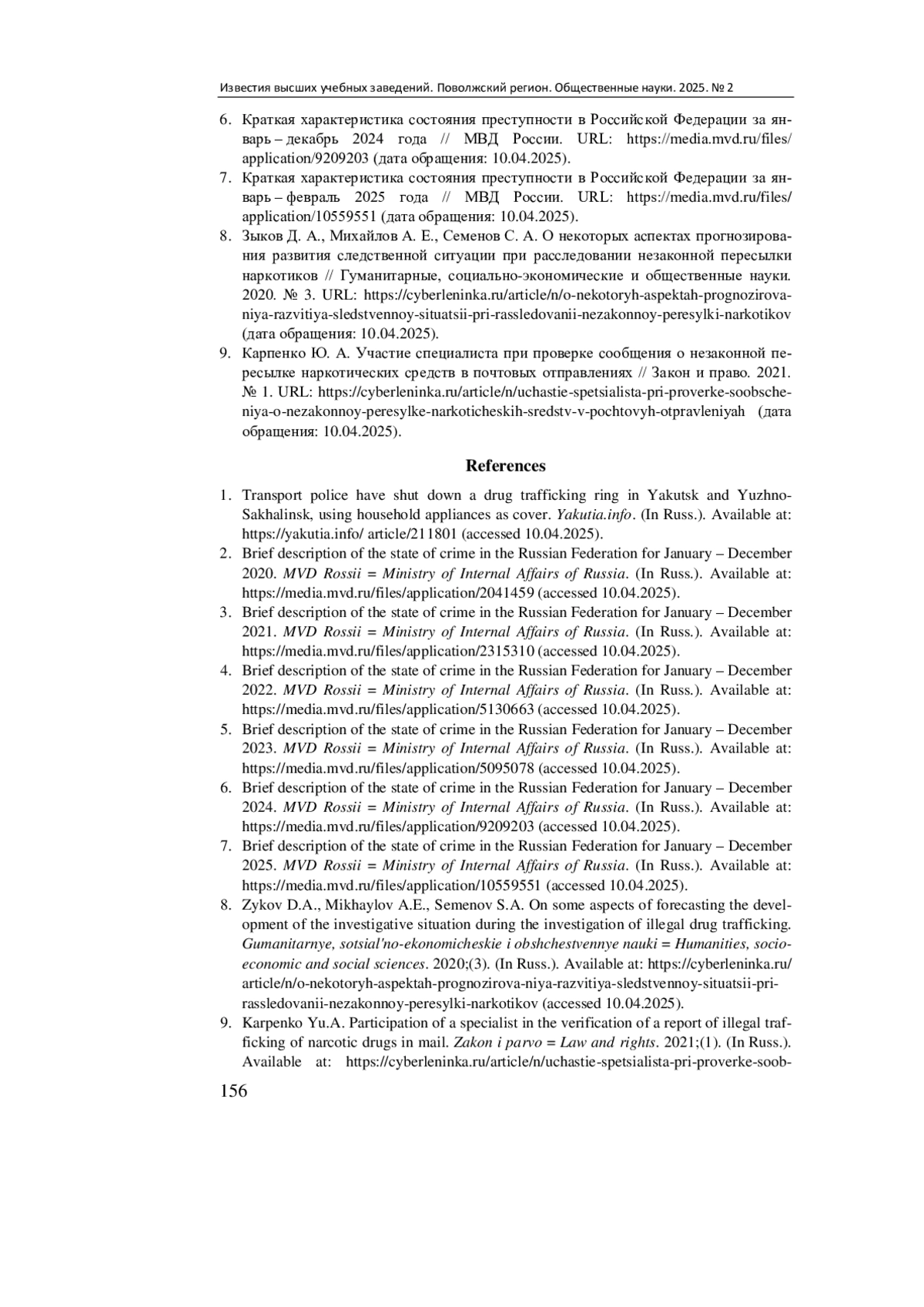 8. Зыков Д. А., Михайлов А. Е., Семенов С. А. О некоторых аспектах прогнозирования развития следственной ситуации при расследовании незаконной пересылки наркотиков // Гуманитарные, социально-экономические и общественные науки. 2020. № 3. URL: https://cyberleninka.ru/article/n/o-nekotoryh-aspektah-prognozirova-niya-razvitiya-sledstvennoy-situatsii-pri-rassledovanii-nezakonnoy-peresylki-narkotikov (дата обращения: 10.04.2025). EDN: RBSBUU