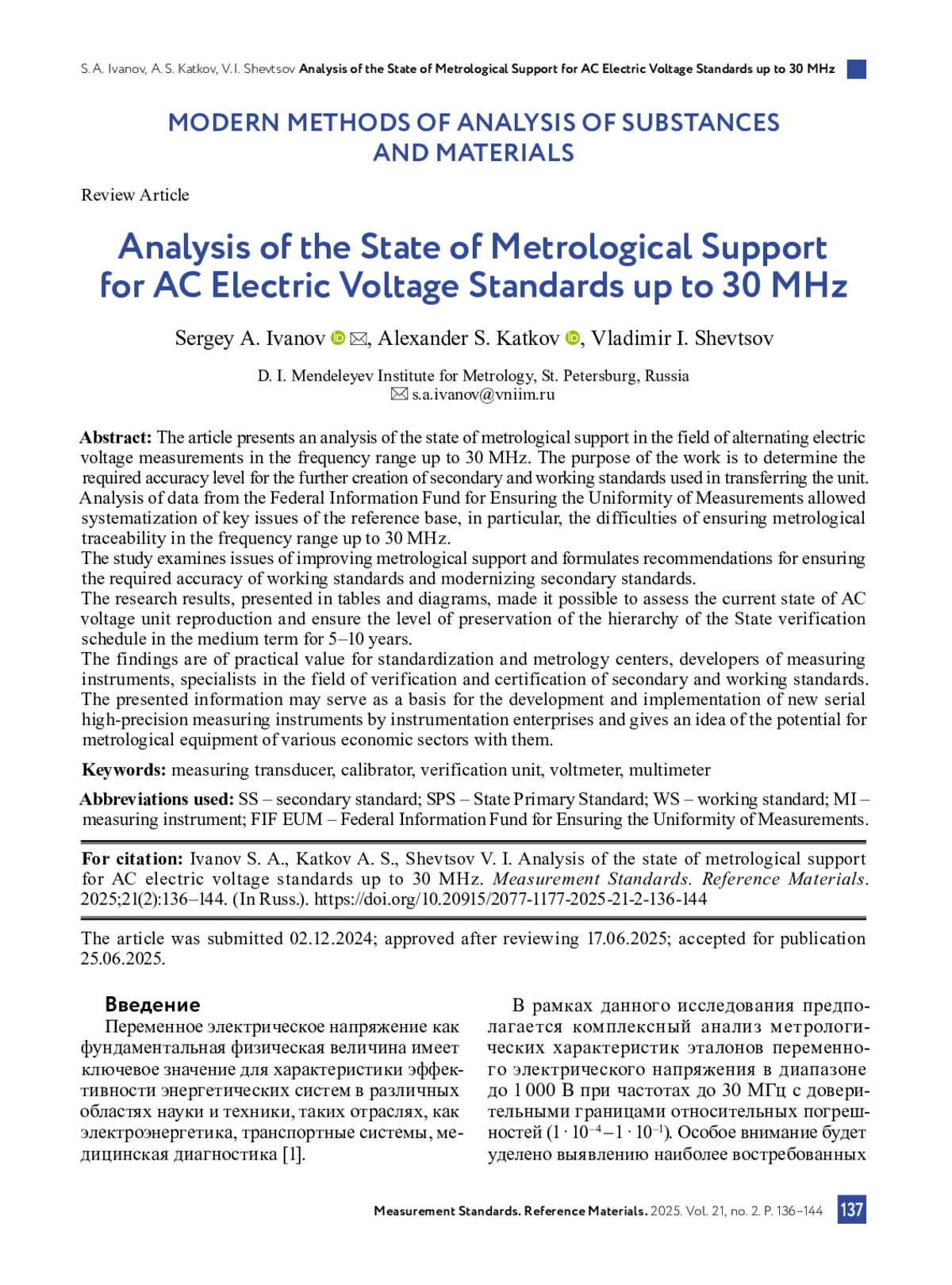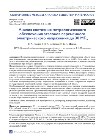 6. Болмусов Ю. Д., Мартынов В. А. Эталонный калибратор электрического напряжения в диапазоне частот 0,1-30,0 МГц // Измерительная техника. 2024. № 4. С. 62-68. DOI: 10.32446/0368-1025it.2024-4-62-68