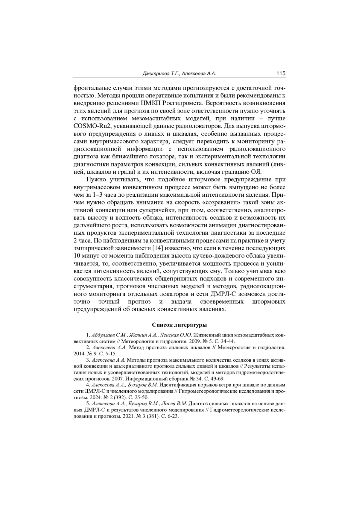 3. Алексеева А.А. Методы прогноза максимального количества осадков в зонах активной конвекции и альтернативного прогноза сильных ливней и шквалов // Результаты испытания новых и усовершенствованных технологий, моделей и методов гидрометеорологических прогнозов. 2007. Информационный сборник № 34. С. 49-69.