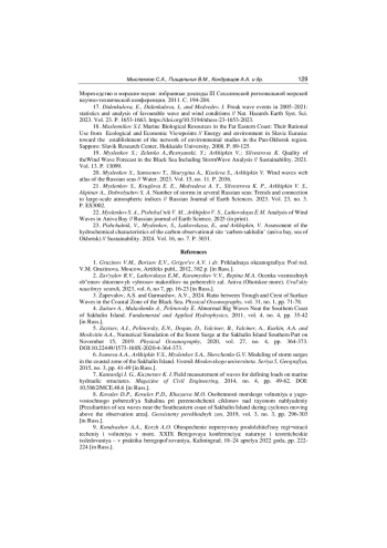 23. Pishchalnik, V., Myslenkov, S., Latkovskaya, E., and Arkhipkin, V. Assessment of the hydrochemical characteristics of the carbon observational site ‘carbon-sakhalin’ (aniva bay, sea of Okhotsk) // Sustainability. 2024. Vol. 16, no. 7. P. 3031. EDN: ZJFSFL