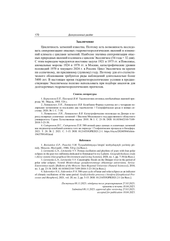 3. Литвиненко Л.Н., Литвиненко В.В. Катастрофические половодья на Днепре в период полярных солнечных затмений // Вестник Московского государственного областного университета. Серия: Естественные науки. 2018. № 3. С. 23-38. DOI: 10.18384/2310-7189-2018-3-23-38 EDN: YMZWFN
