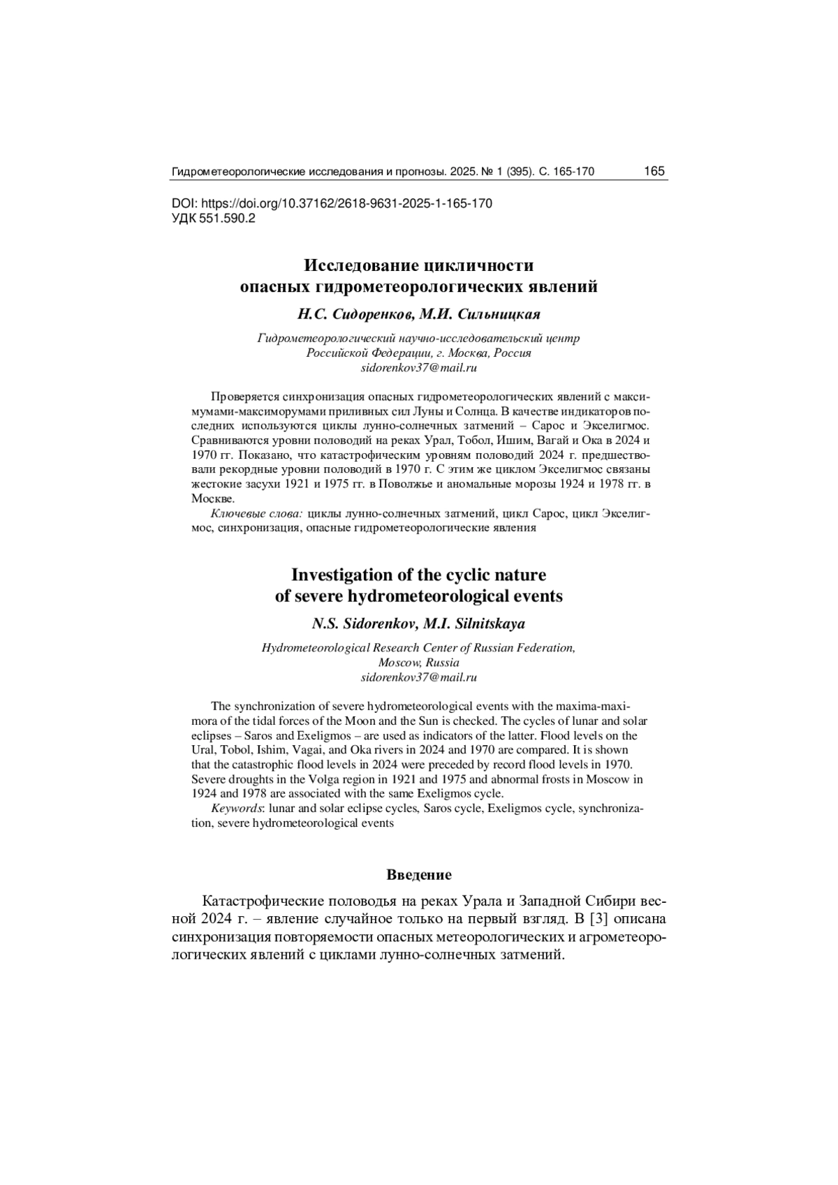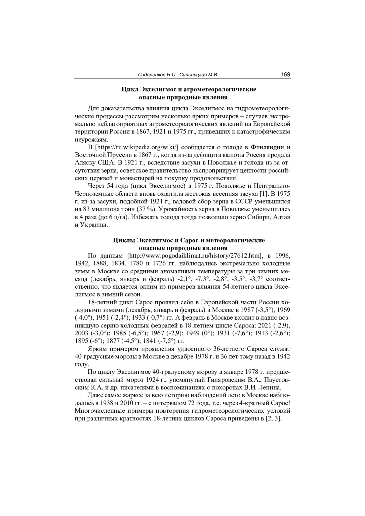 4. Сидоренков Н.С., Сидоренков П.Н. 580-летний цикл лунных и солнечных затмений как индикатор колебаний климата того же периода // Геофизические процессы и биосфера. 2021. Т. 20. № 2. 2021. С. 5-15. https://ria.ru/20240504/ishim-1943799149.html. DOI: 10.21455/GPB2021.2-1 EDN: HXPPNM