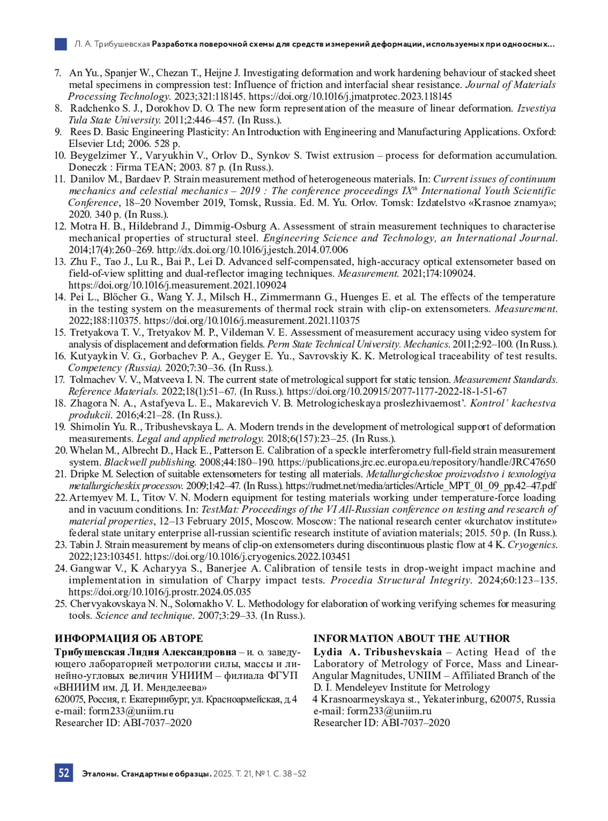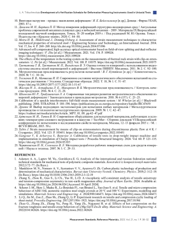 19. Шимолин Ю. Р., Трибушевская Л. А. Современные тенденции развития метрологического обеспечения измерений деформации // Законодательная и прикладная метрология. 2018. № 6 (157). С. 23-25.