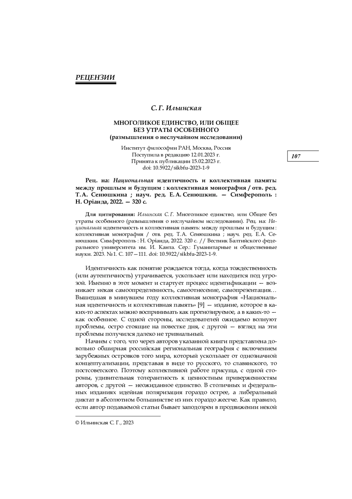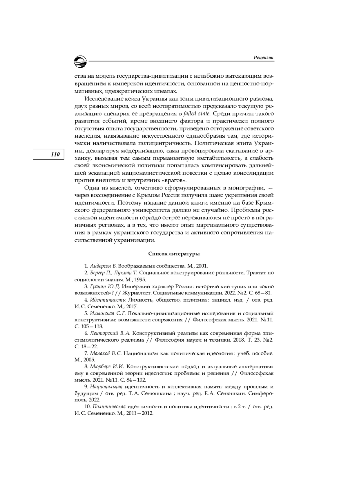 9. Национальная идентичность и коллективная память: между прошлым и будущим / отв. ред. Т. А. Сенюшкина; науч. ред. Е. А. Сенюшкин. Симферополь, 2022.
