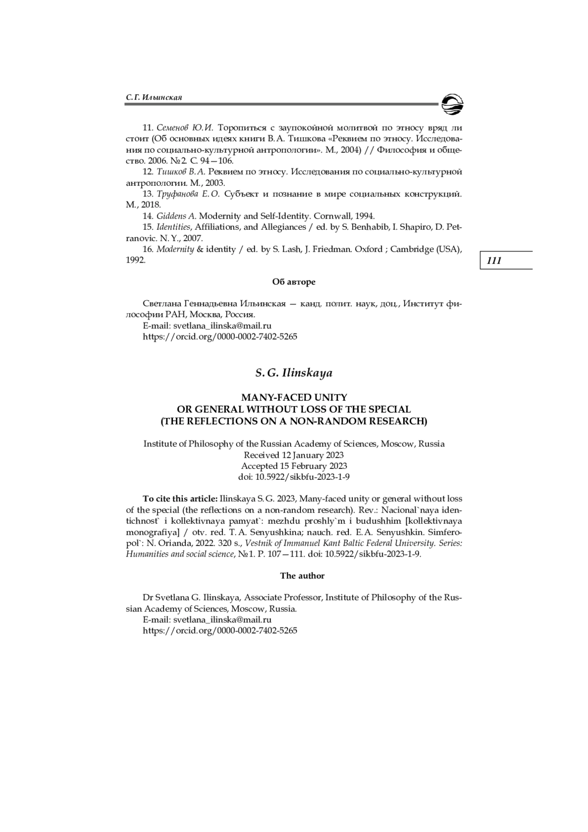 4. Идентичность: Личность, общество, политика: энцикл. изд. / отв. ред. И. С. Семененко. М., 2017. EDN: PNIWQP