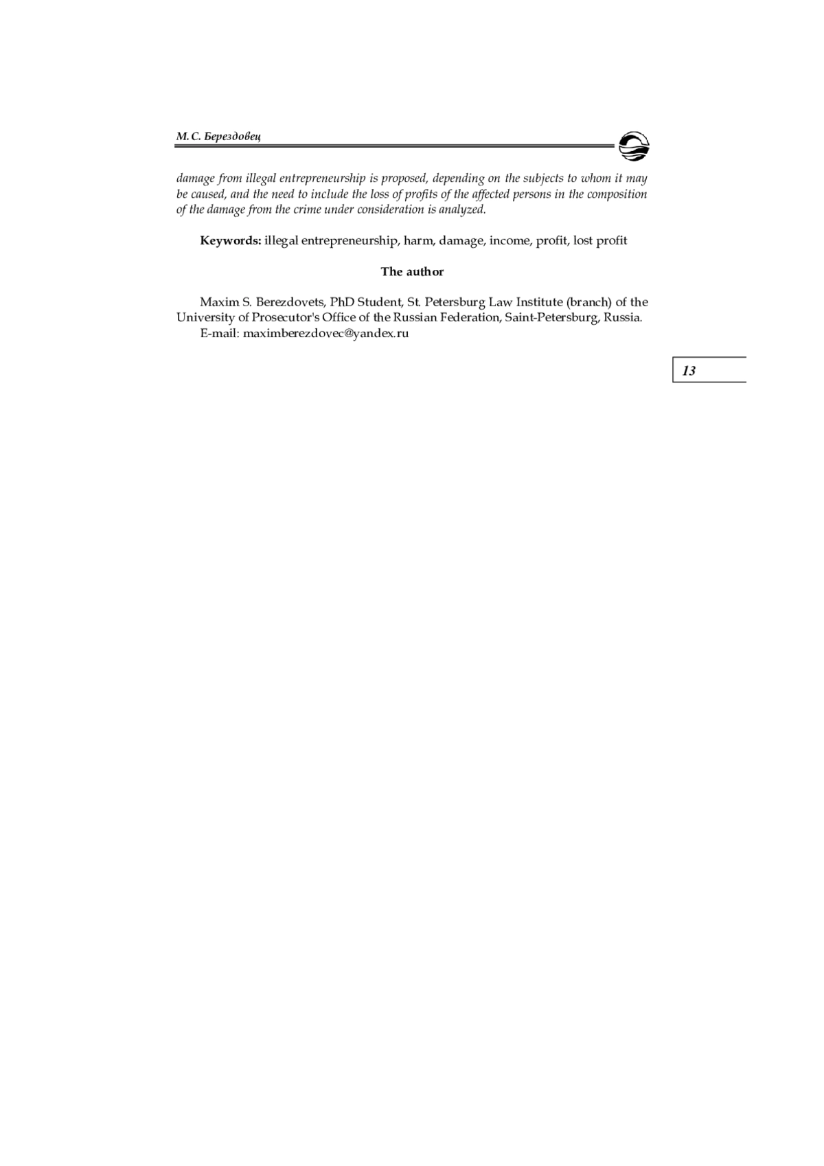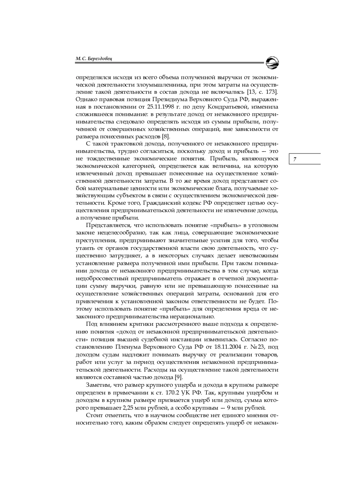 13. Прохоренко Д. В. Доход от незаконной предпринимательской деятельности: проблемы интерпретации // Актуальные проблемы российского права. 2017. № 9. С. 172-175. EDN: ZIOHTV