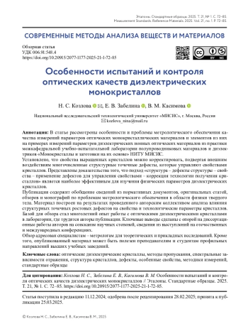 Kozlova N.S., Zabelina E.V. Crystalline materials for the electronic industry and the quality of their measurements. The experience of the testing laboratory. Product quality control. 2023;2:47-50. (In Russ.).