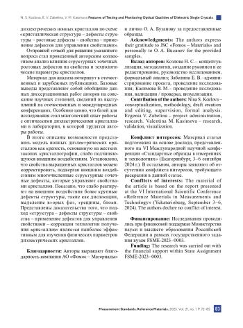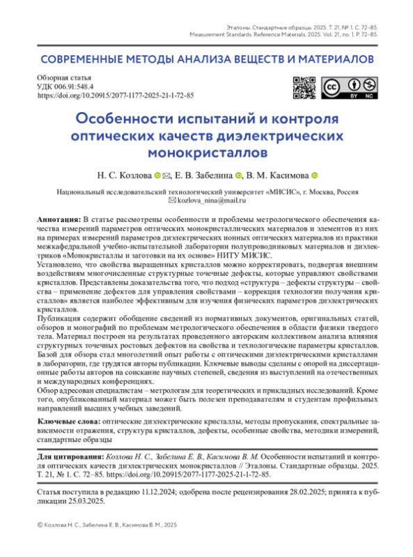18. Козлова Н. С., Забелина Е. В. Кристаллические материалы для электронной промышленности и качество их измерений. Опыт испытательной лаборатории // Контроль качества продукции. 2023. № 2 С. 47-50.