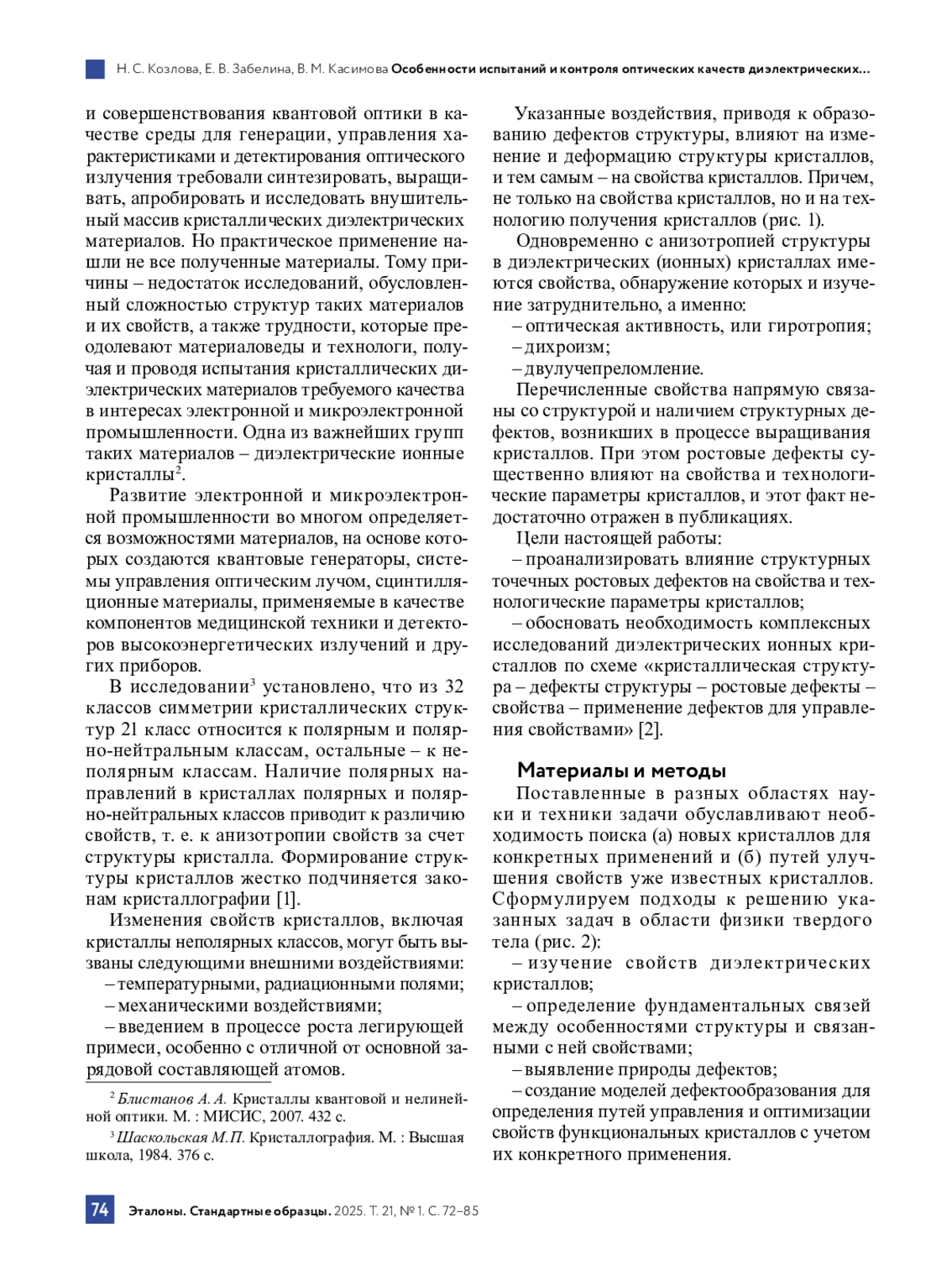 17. Козлова Н. С., Забелина Е. В. Кристаллические материалы для электронной промышленности и качество их измерений. Часть 1 // Контроль качества продукции. 2023. № 1. С. 16-21.